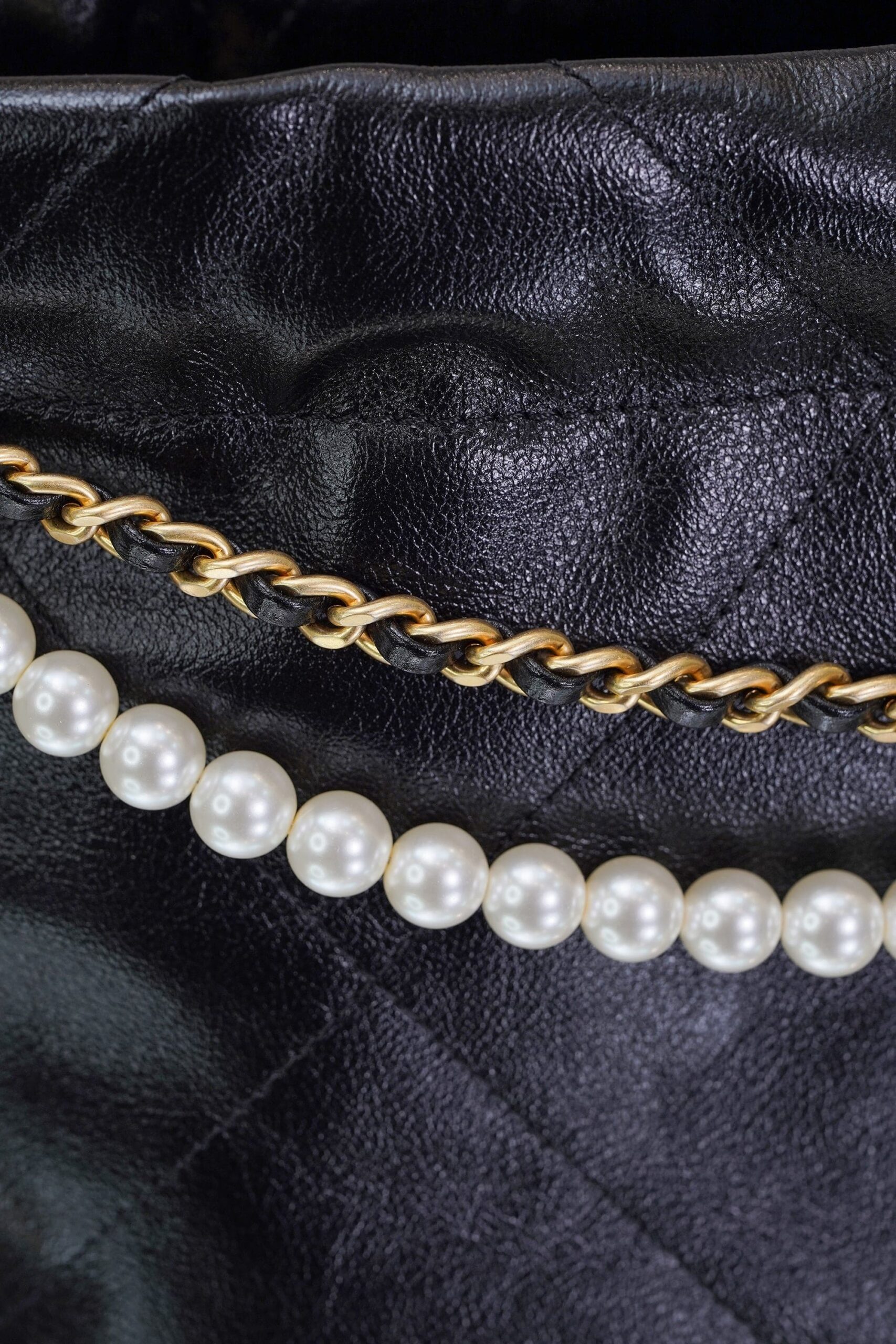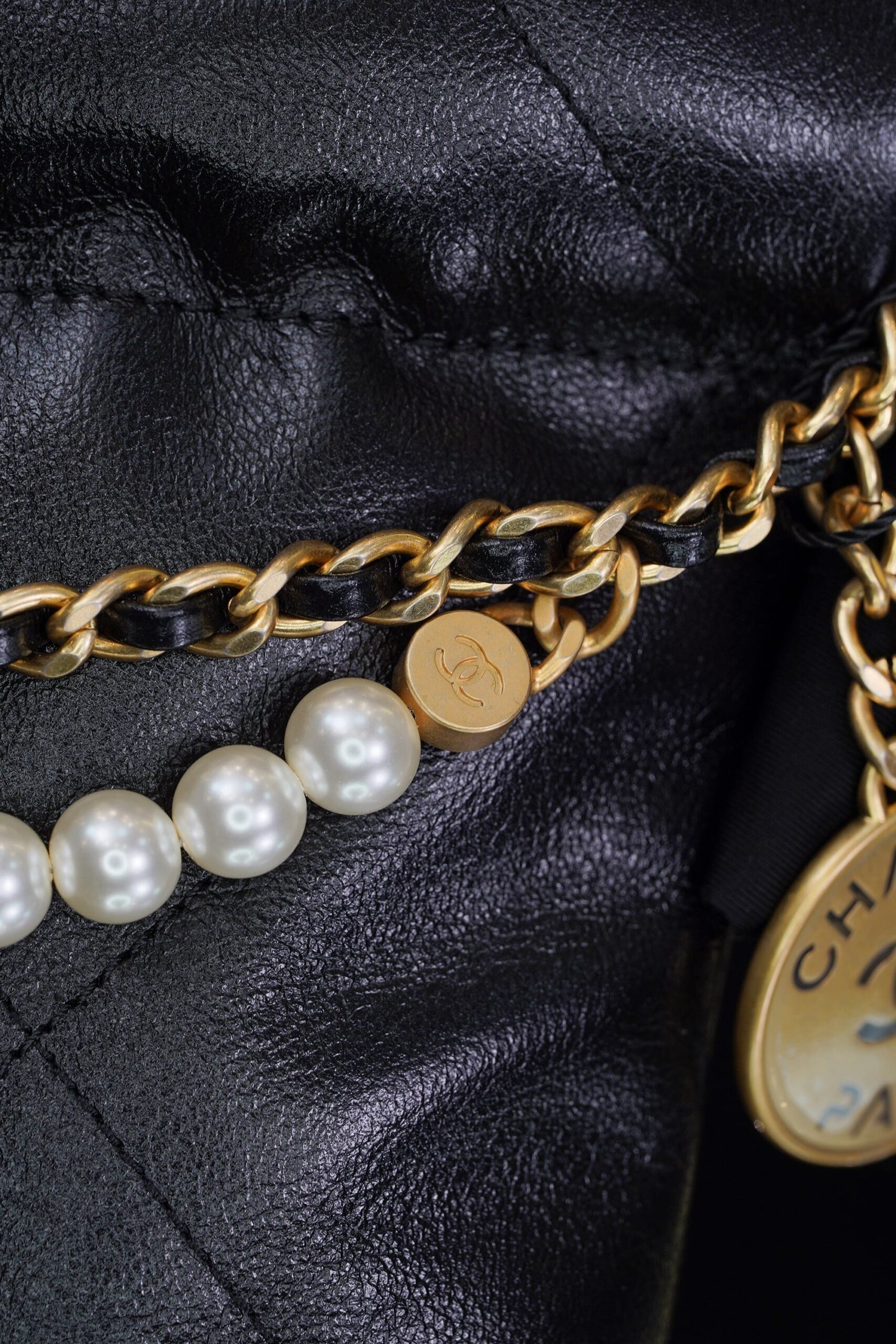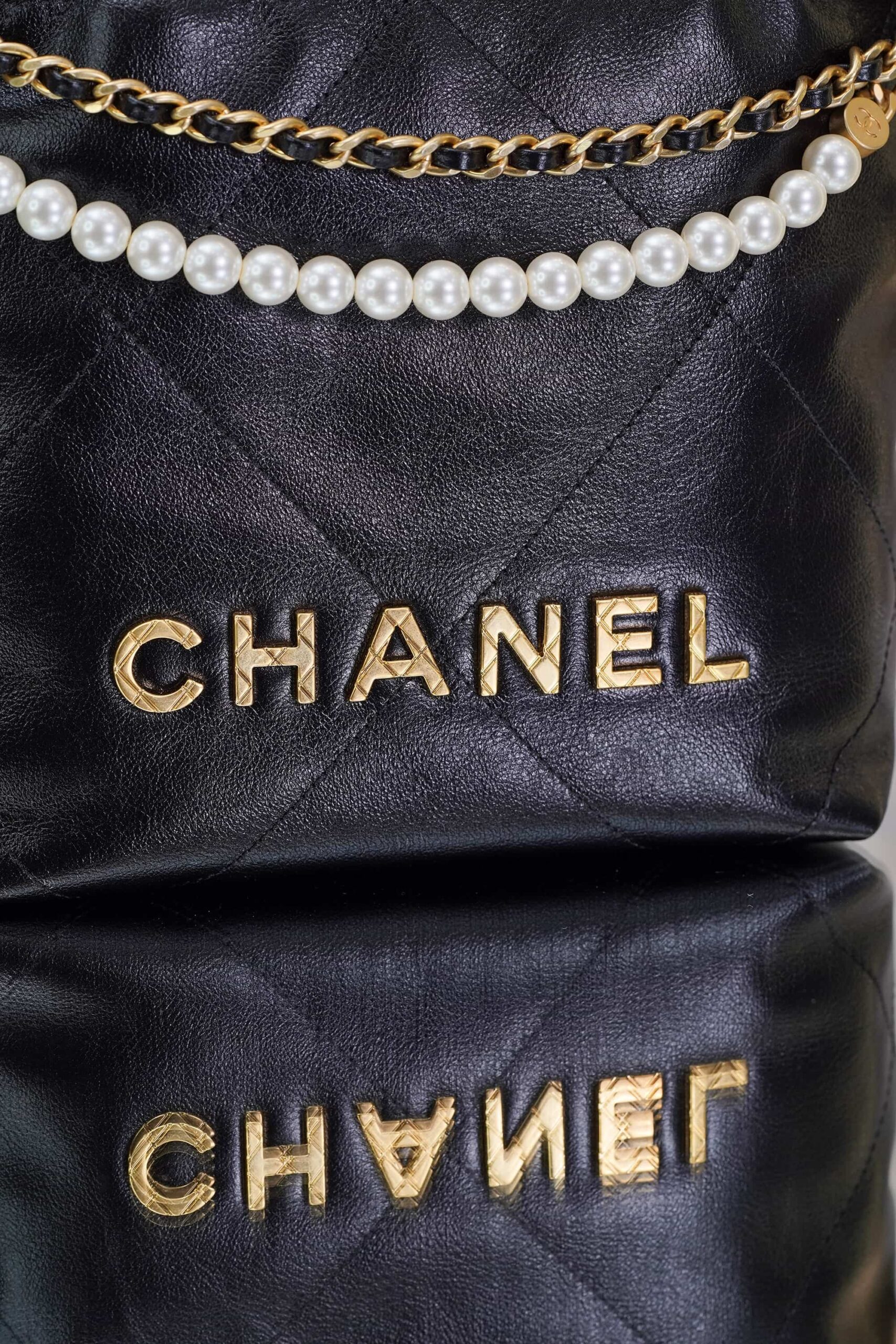 CHANEL 22 PEARL CHAIN – MINI – BLACK – SHINY CALFSKIN – GOLD