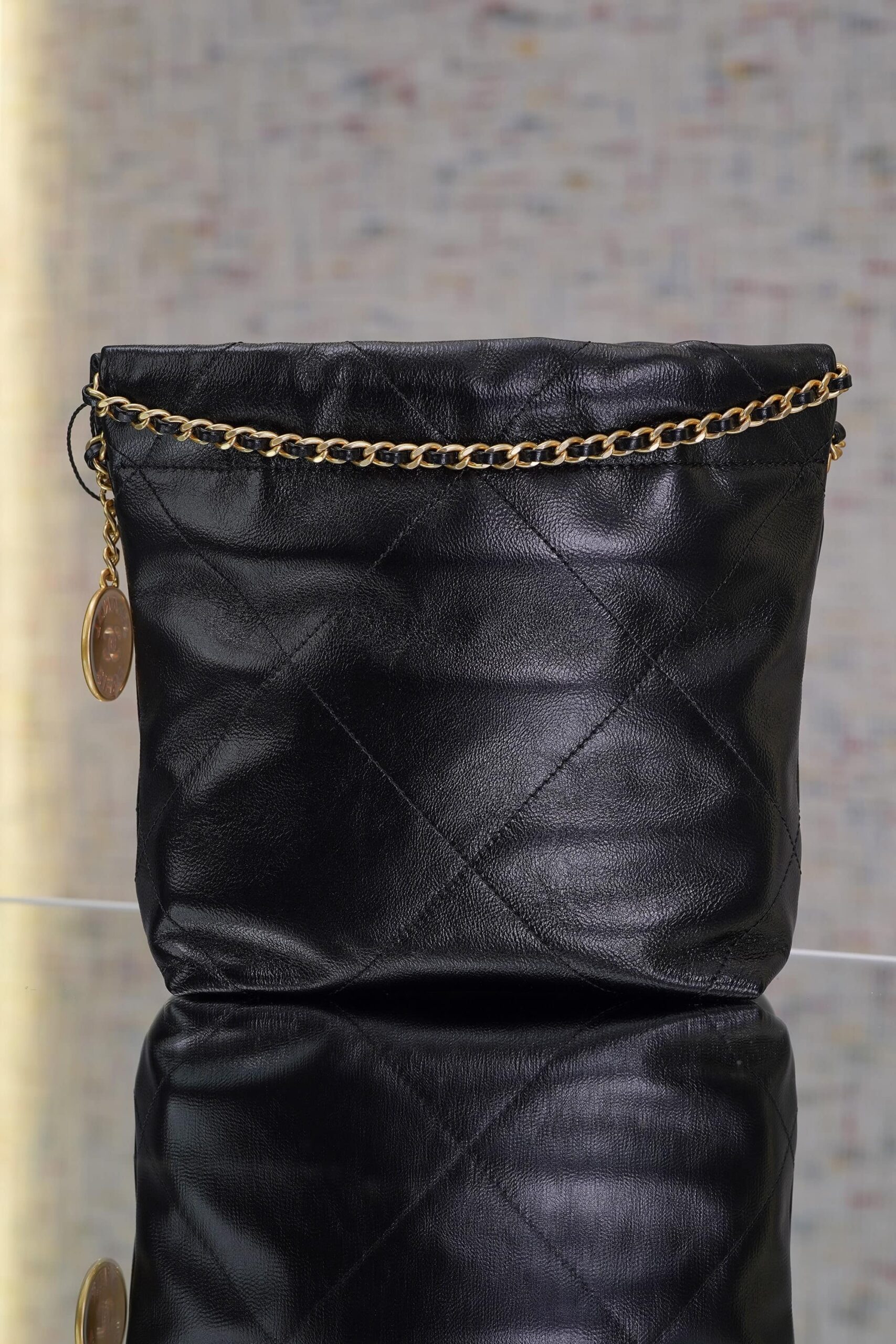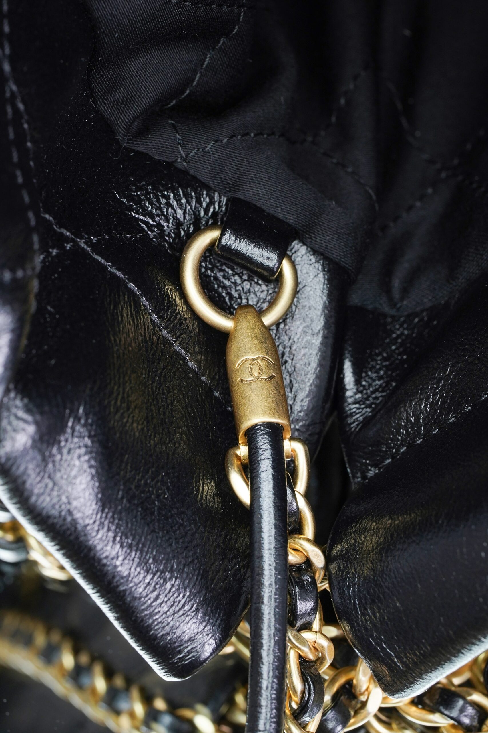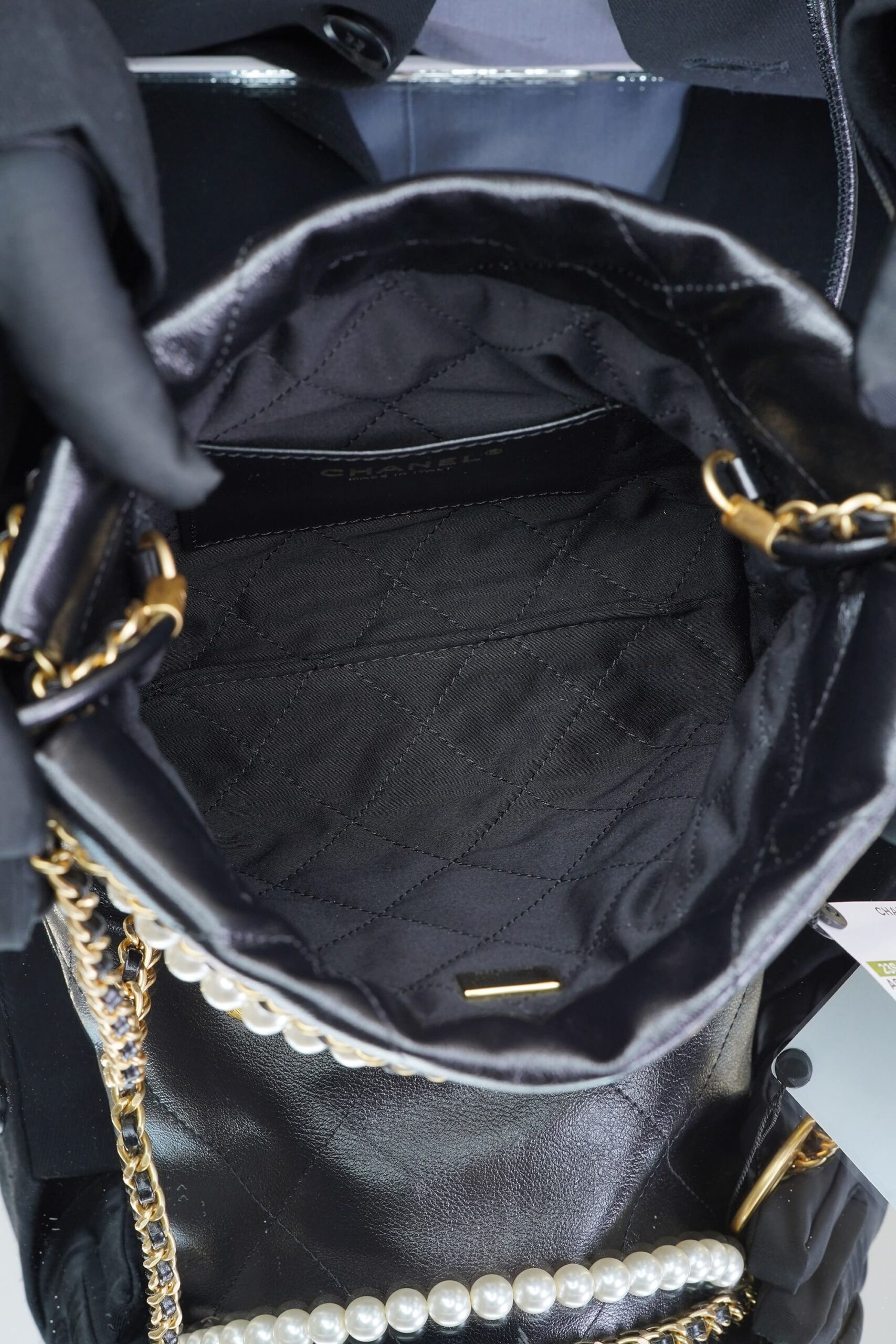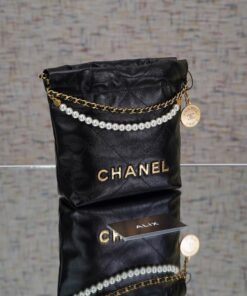 Be the first to review “CHANEL 22 PEARL CHAIN – MINI – BLACK – SHINY CALFSKIN – GOLD”