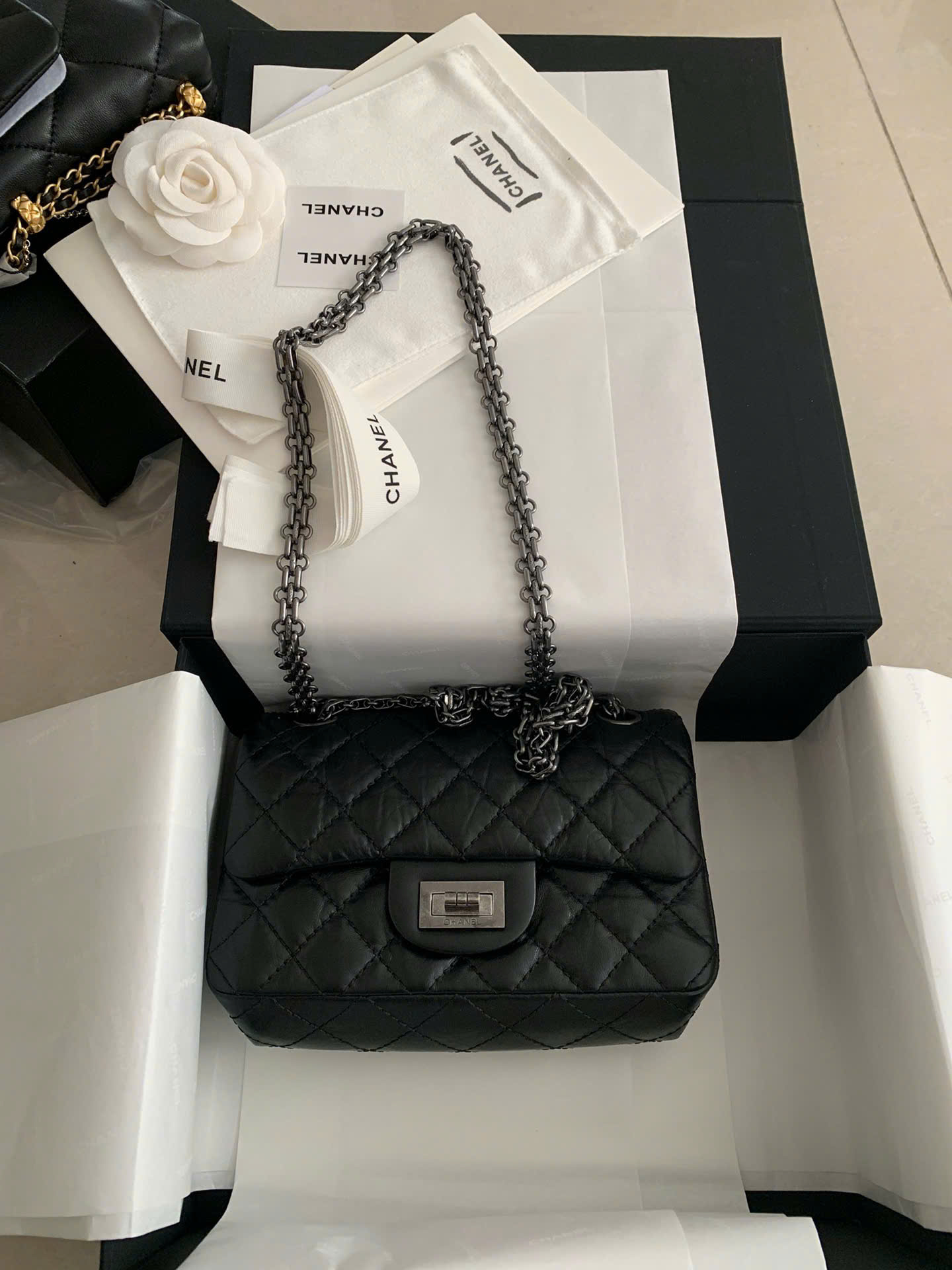 - “Mademoiselle Lock”: A characteristic of the Chanel 2.55 bag line, creating a delicate and attractive highlight.