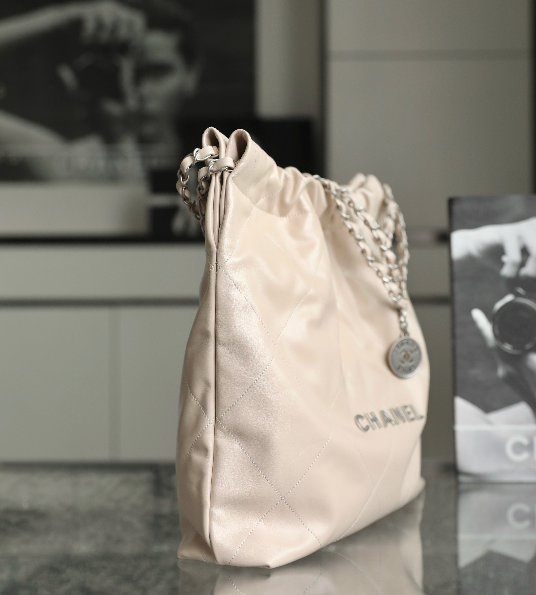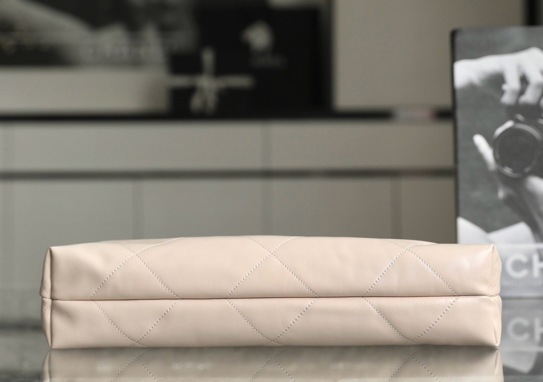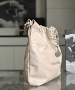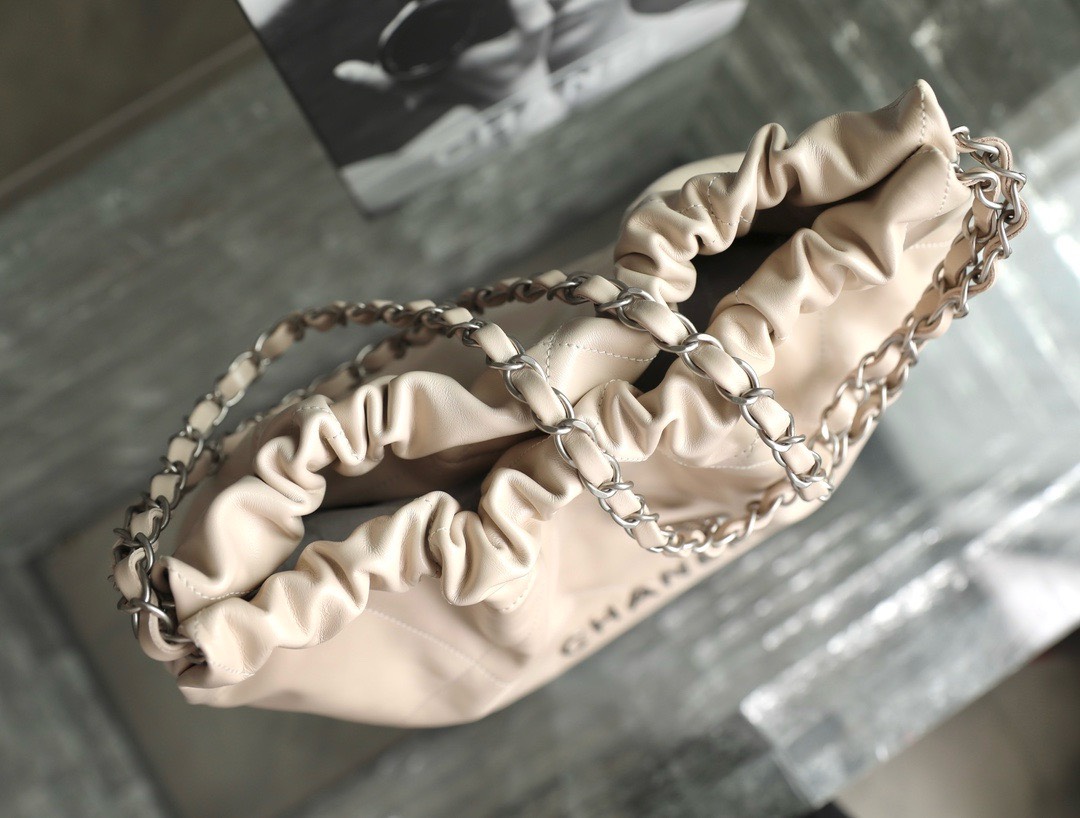 CHANEL 22 – MEDIUM – LIGHT BEIGE – SHINY CALFSKIN – SILVER