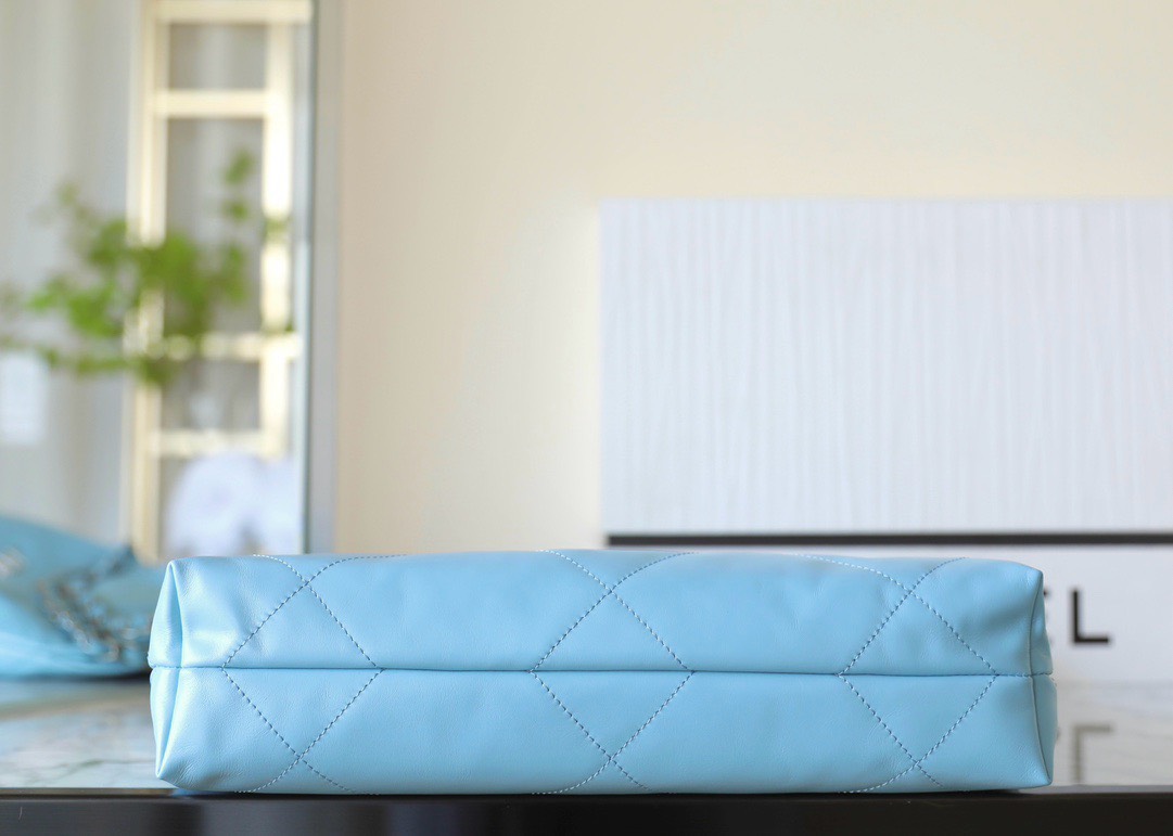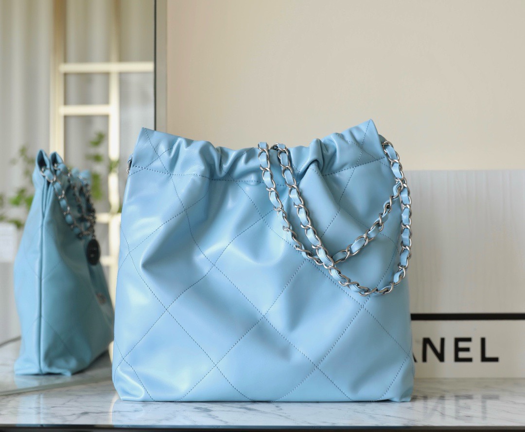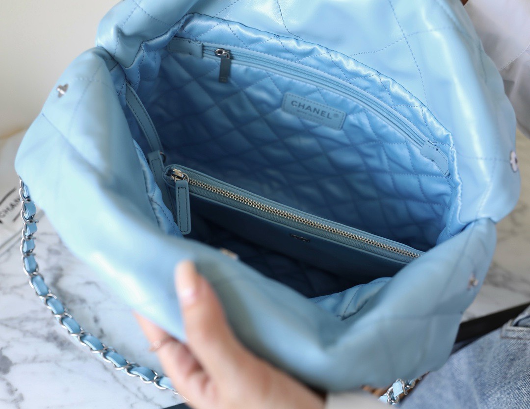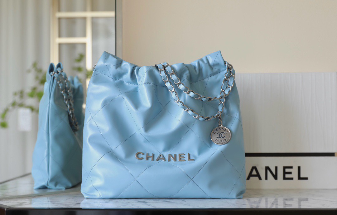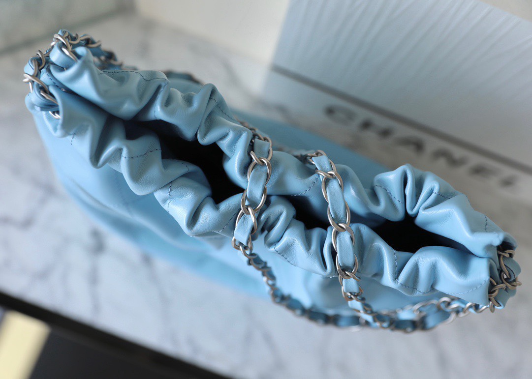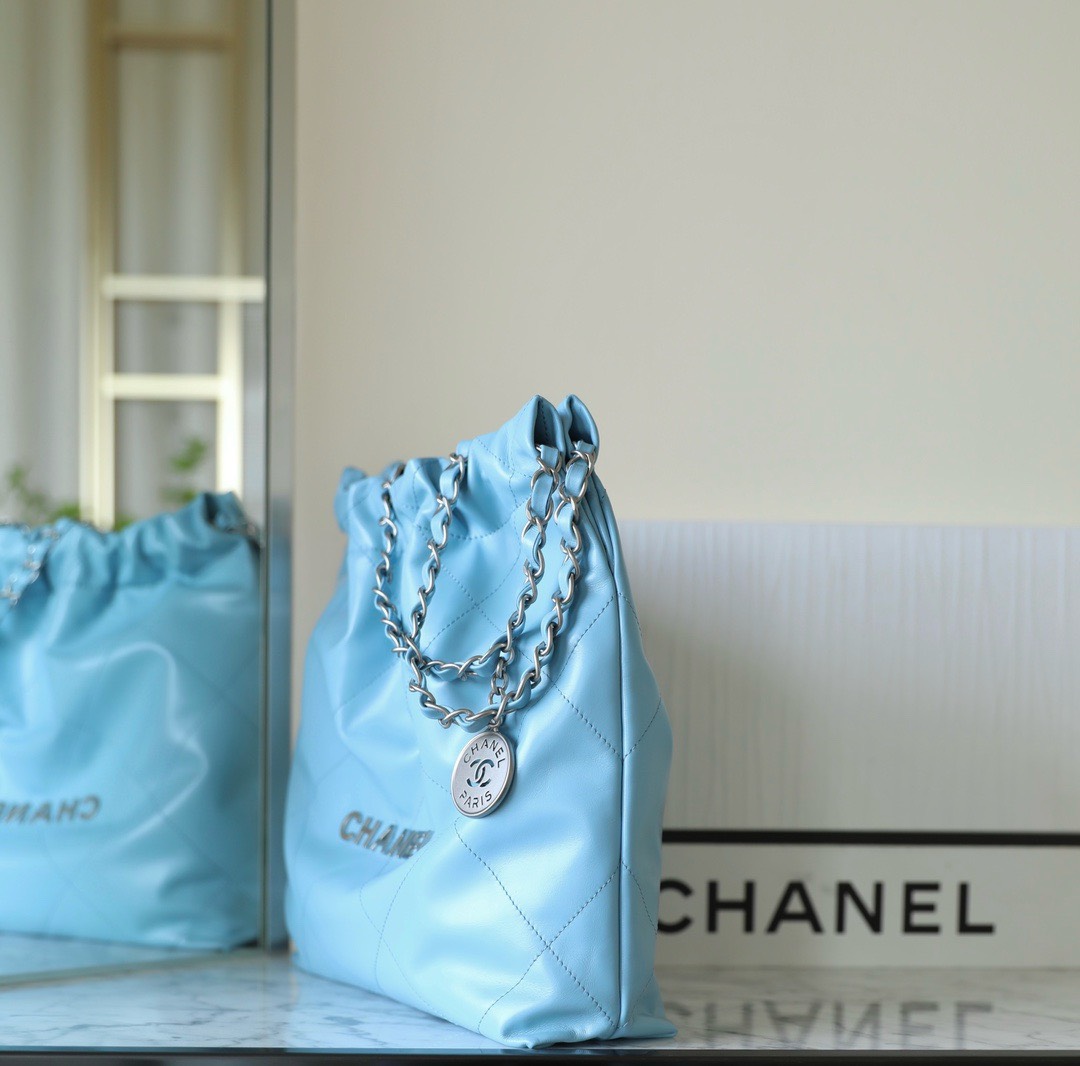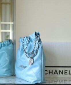 CHANEL 22 – SMALL – BLUE – SHINY CALFSKIN – SILVER