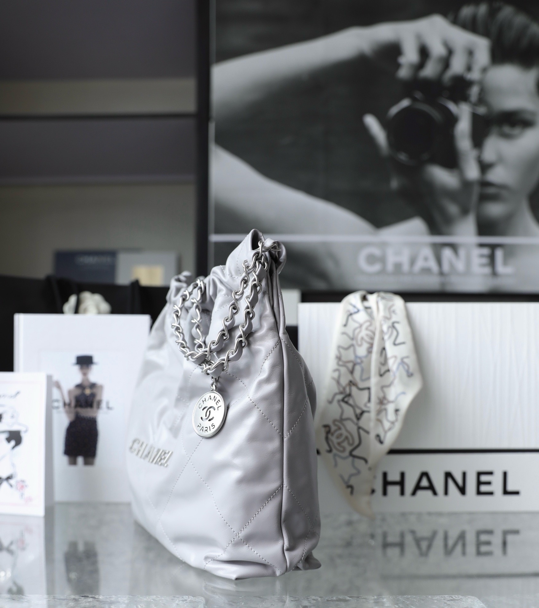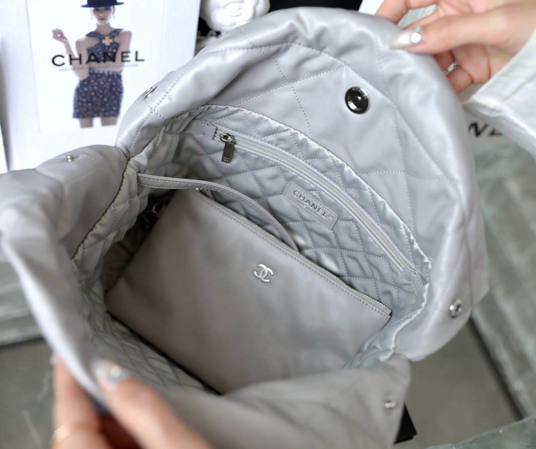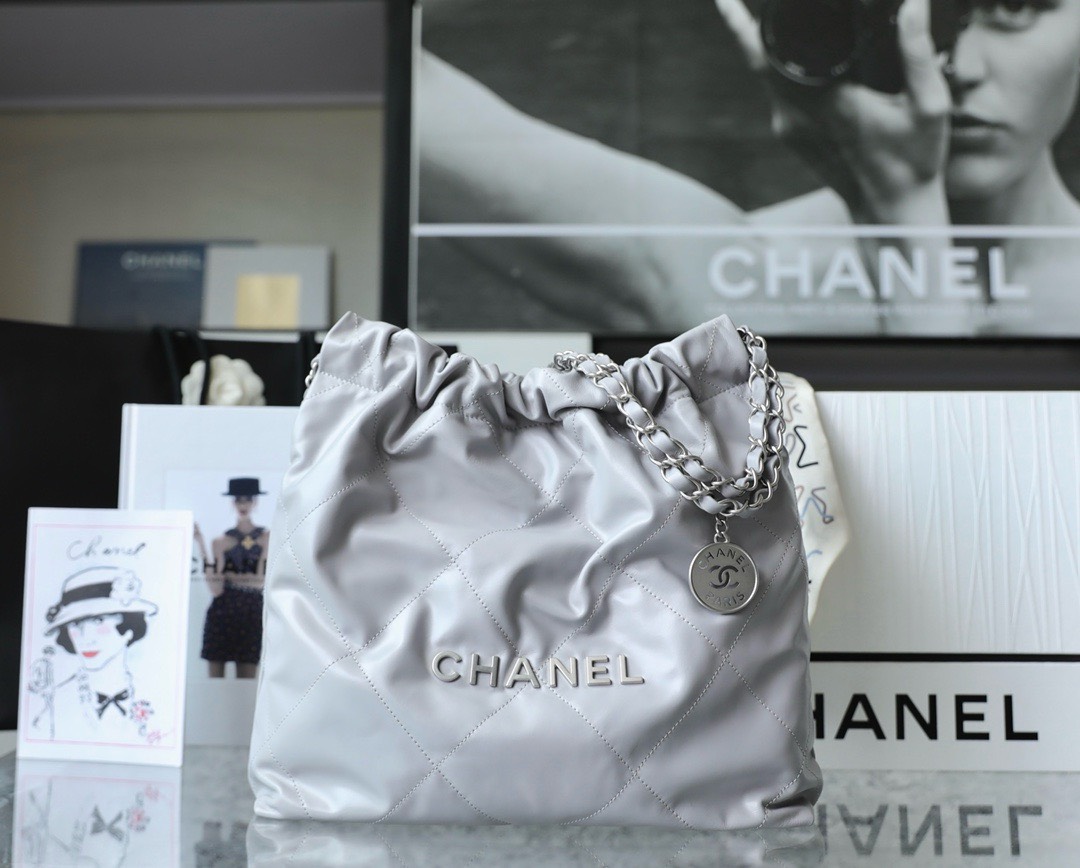CHANEL 22 – SMALL – GREY – SHINY CALFSKIN – SILVER