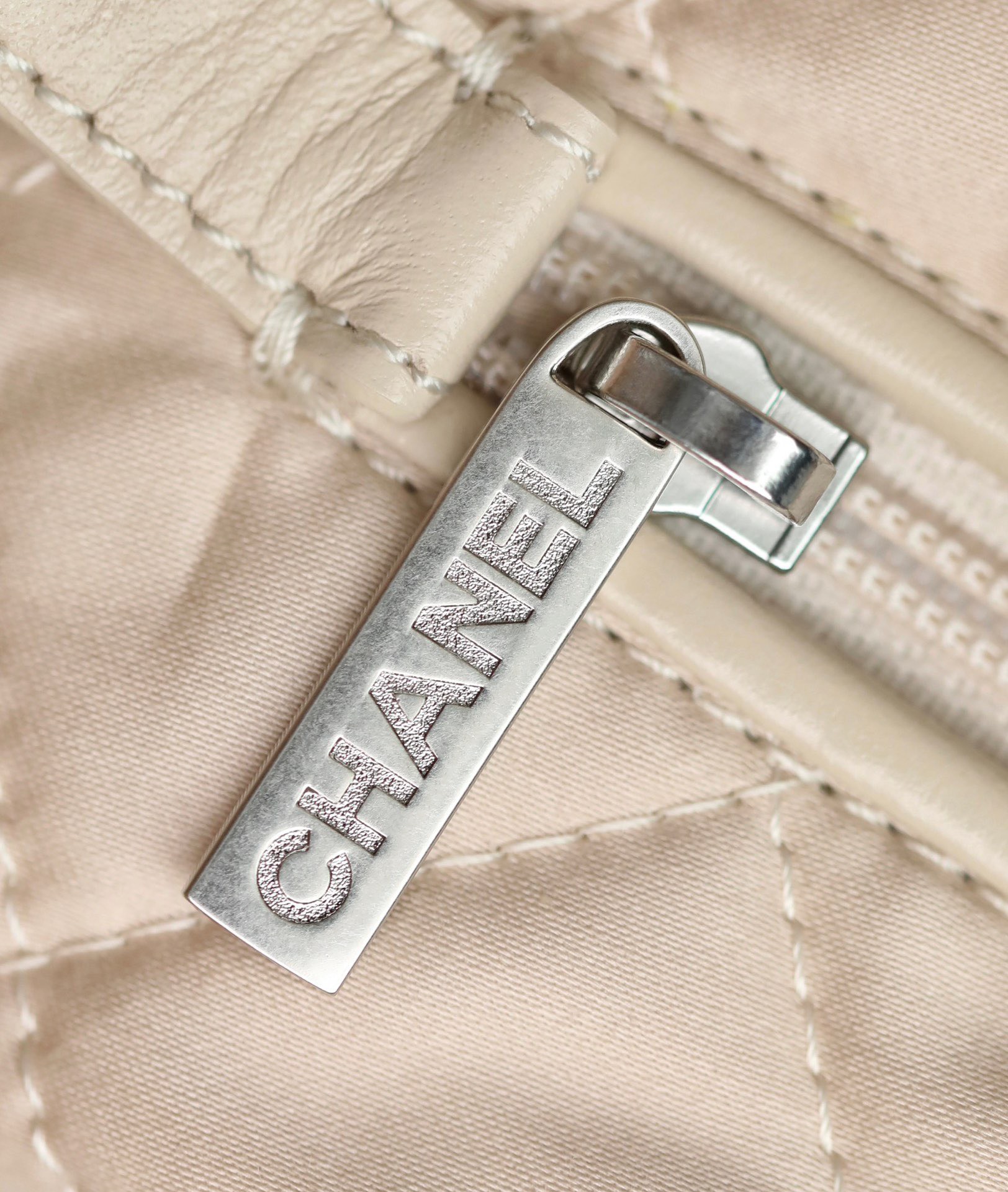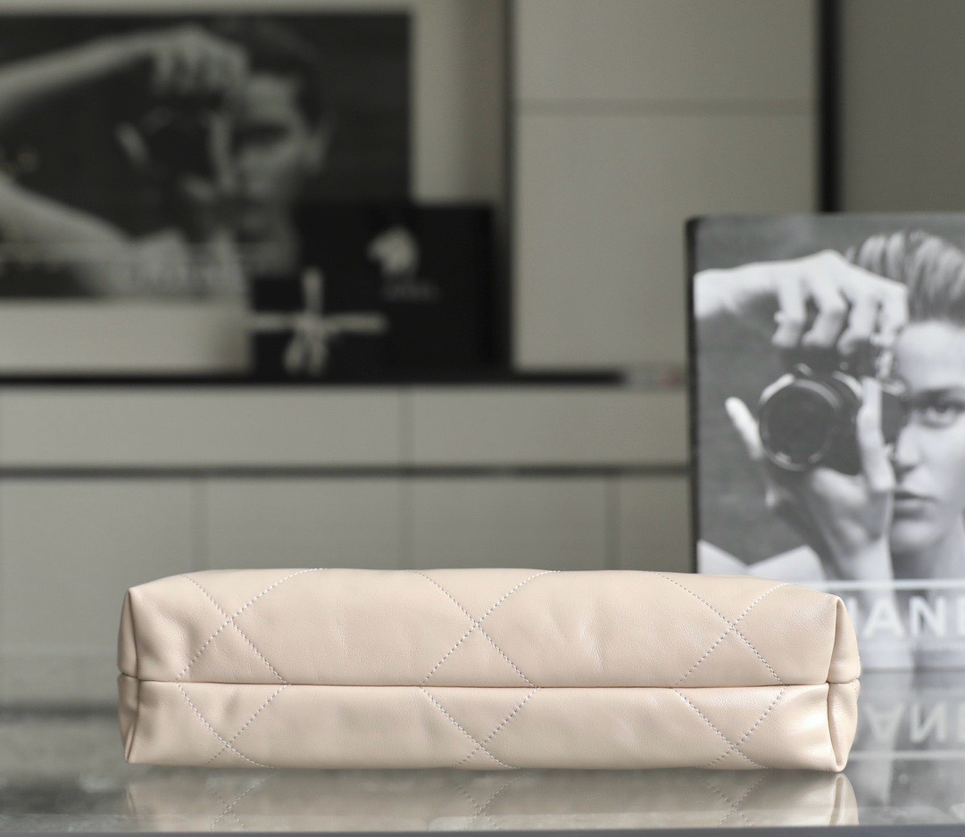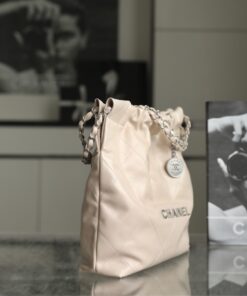 CHANEL 22 – SMALL – LIGHT BEIGE – SHINY CALFSKIN – SILVER