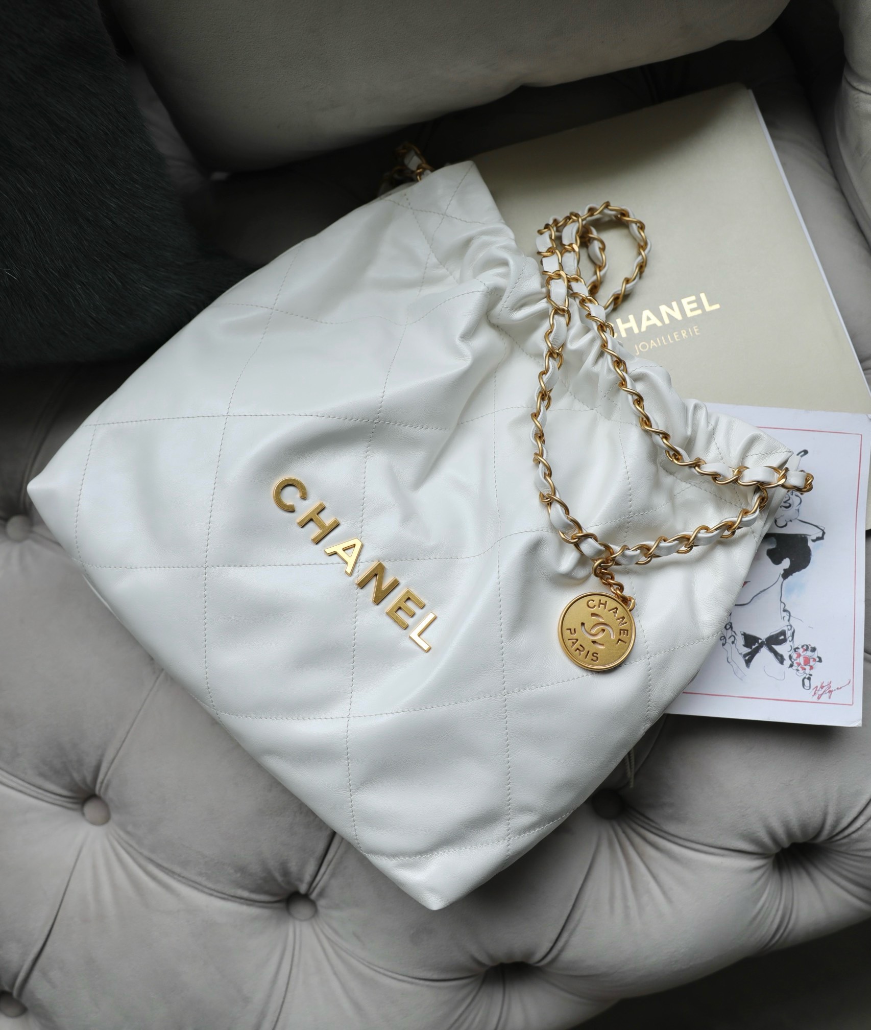 CHANEL 22 – SMALL – WHITE – SHINY CALFSKIN – GOLD