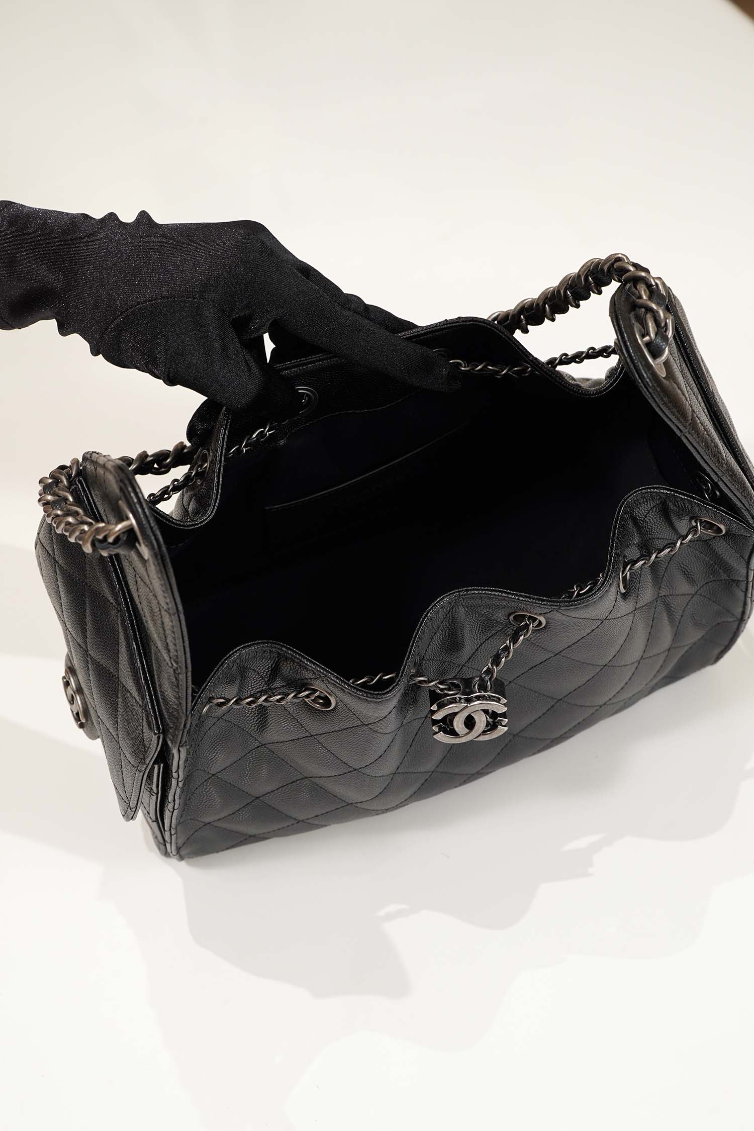 CHANEL 25 – SMALL – BLACK – CAVIAR – SILVER
