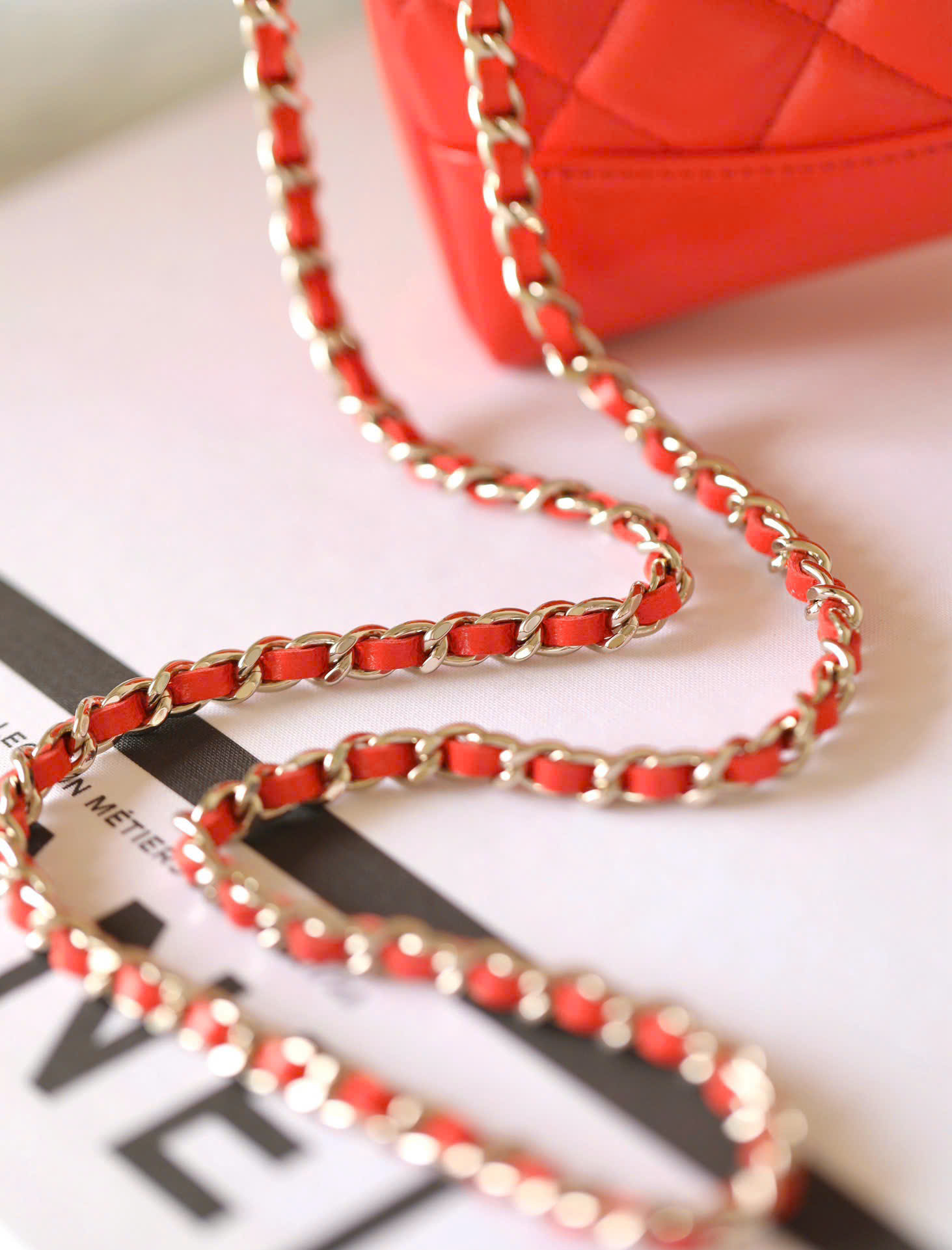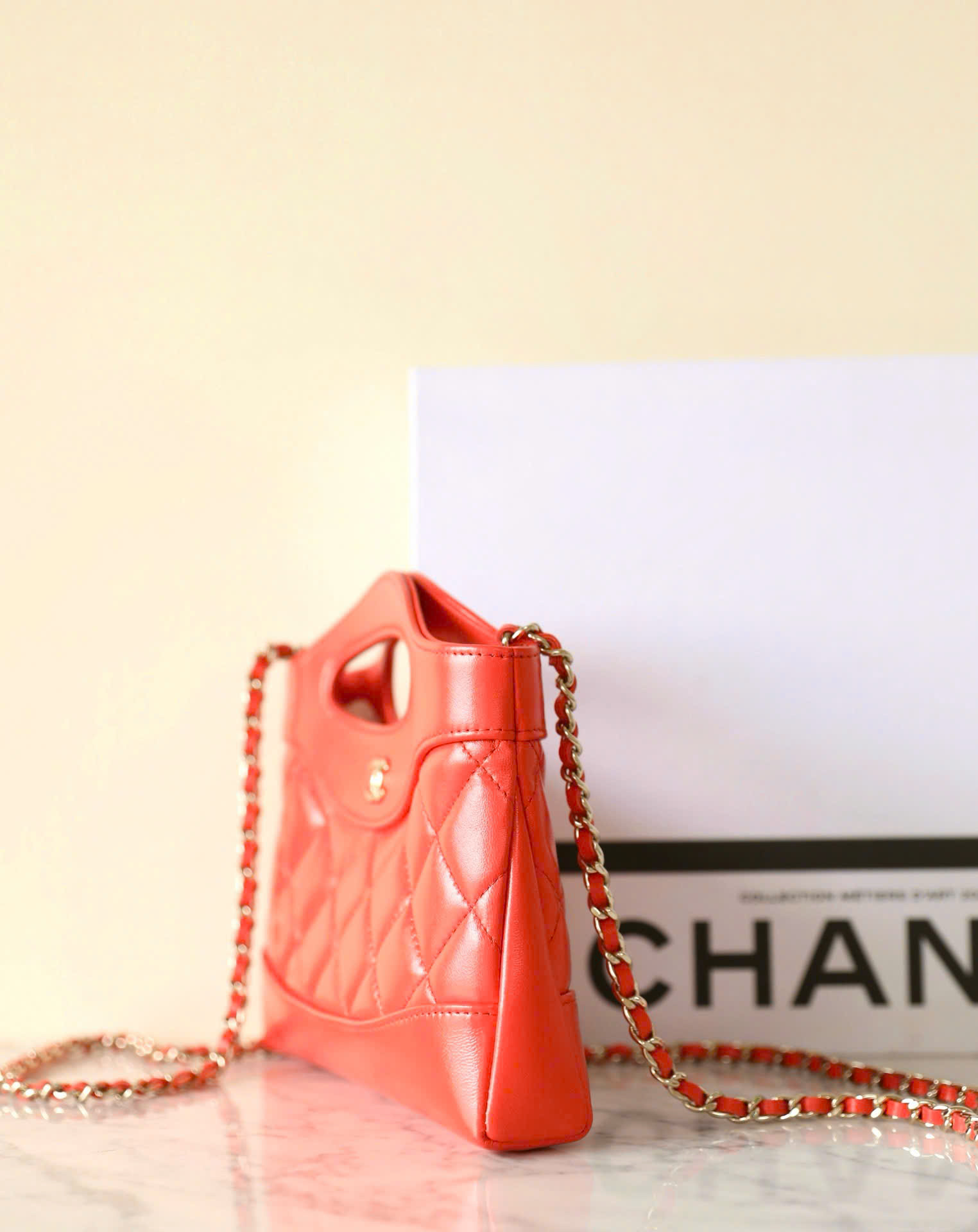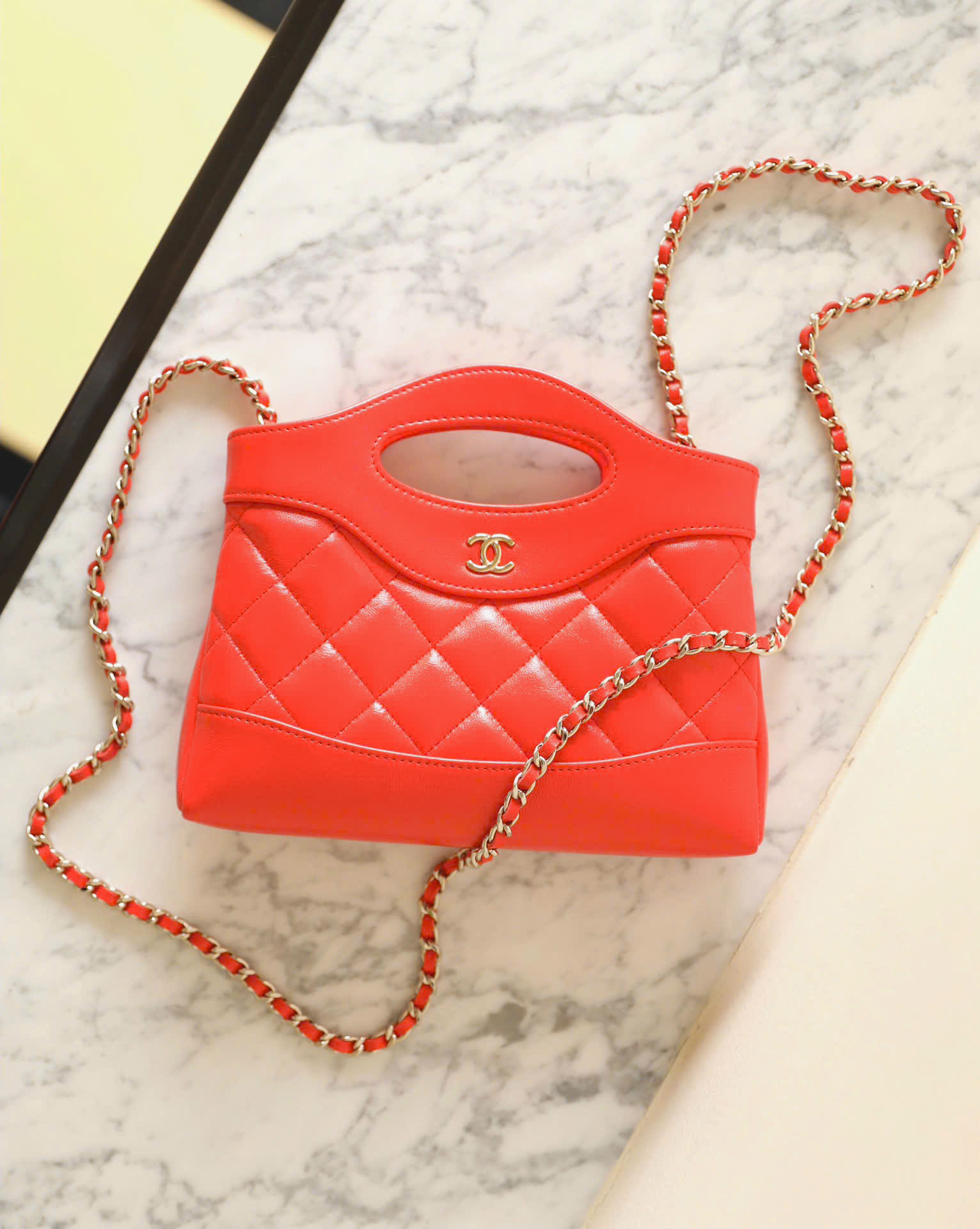 CHANEL 31 – MINI – RED – SHINY CALFSKIN – GOLD CHAMPAGNE