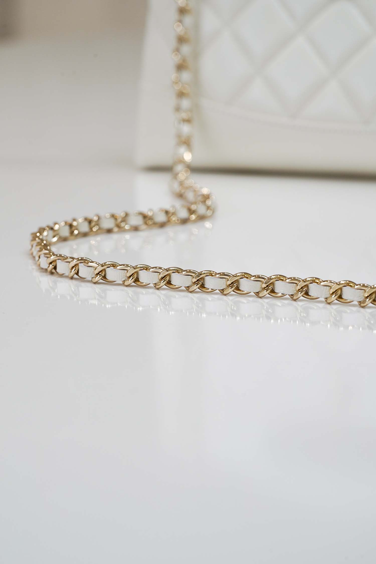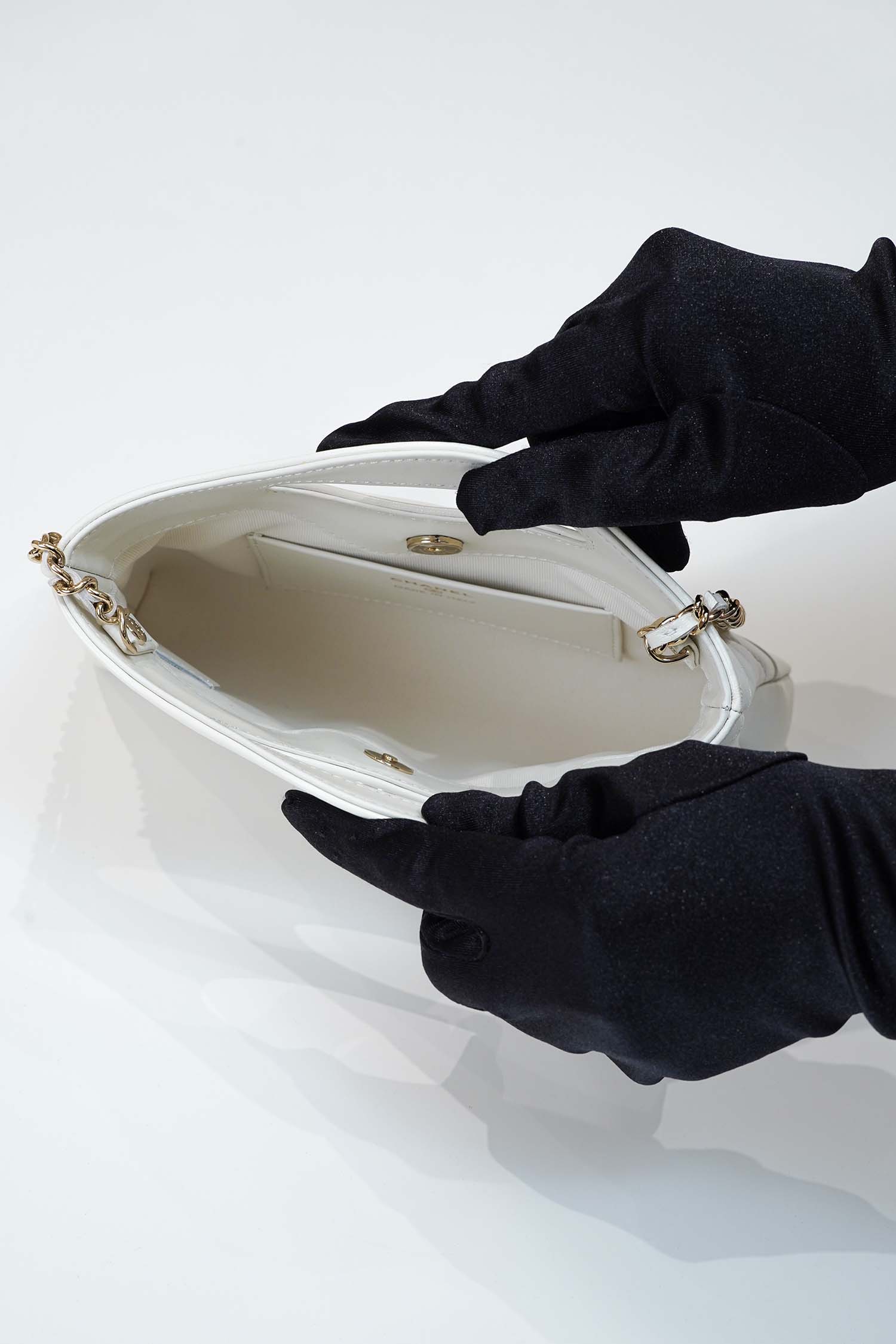 CHANEL 31 – MINI – WHITE – SHINY CALFSKIN – GOLD CHAMPAGNE
