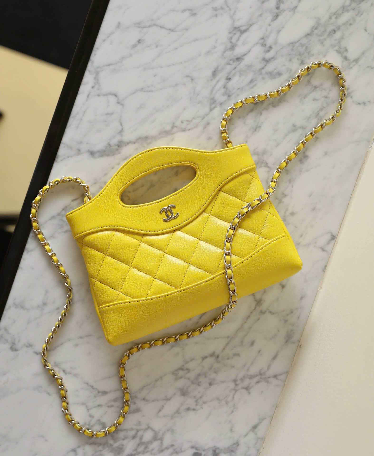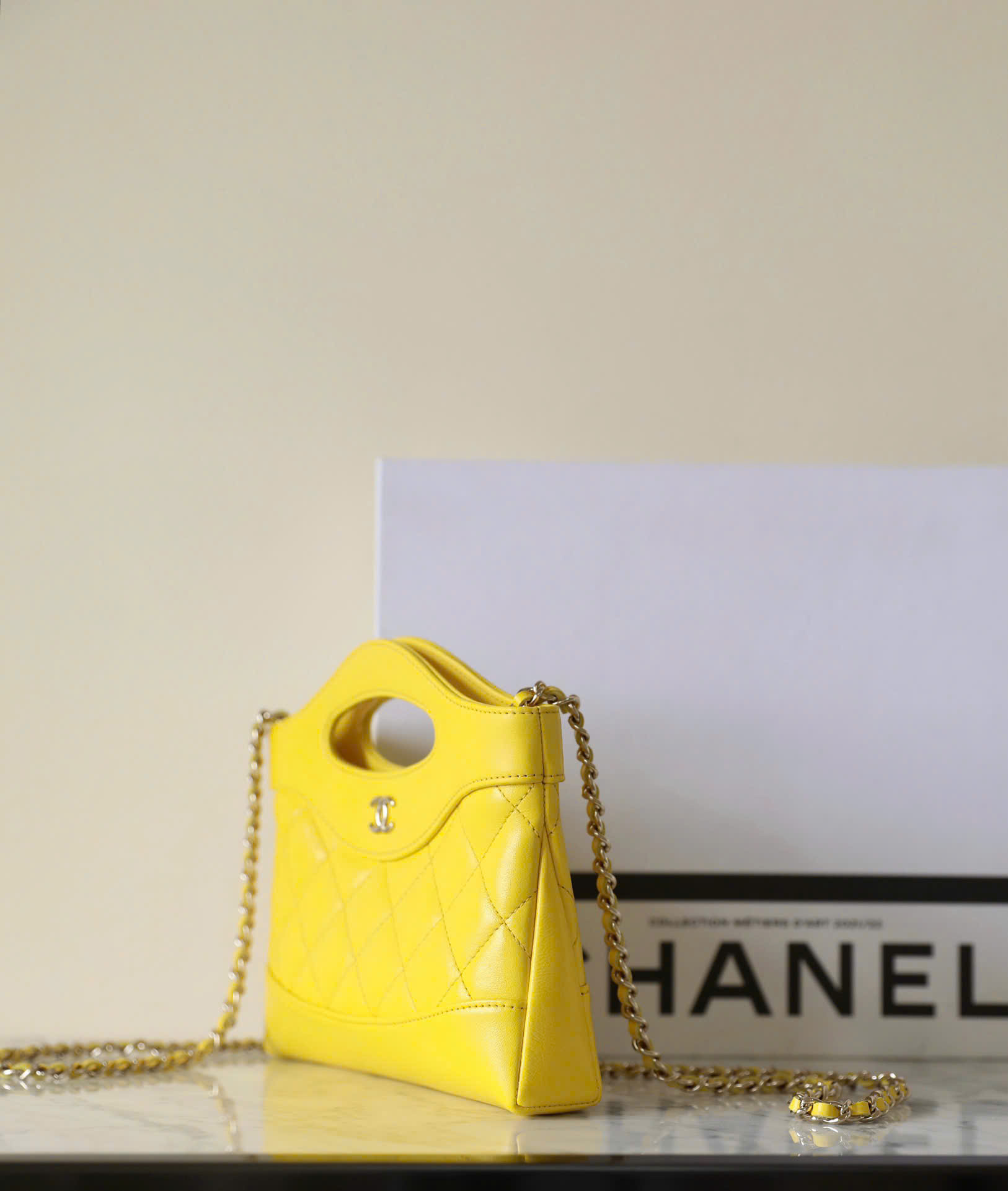 CHANEL 31 – MINI – YELLOW – SHINY CALFSKIN – GOLD CHAMPAGNE