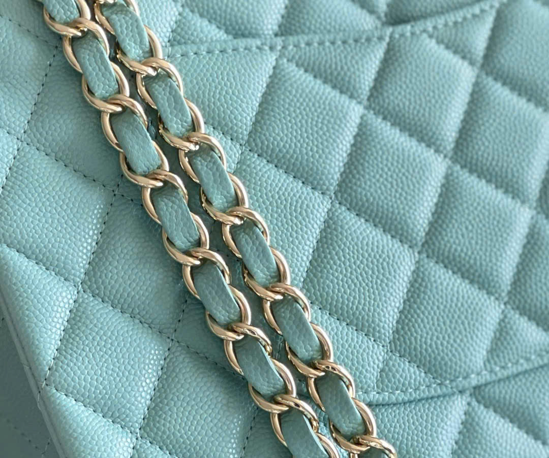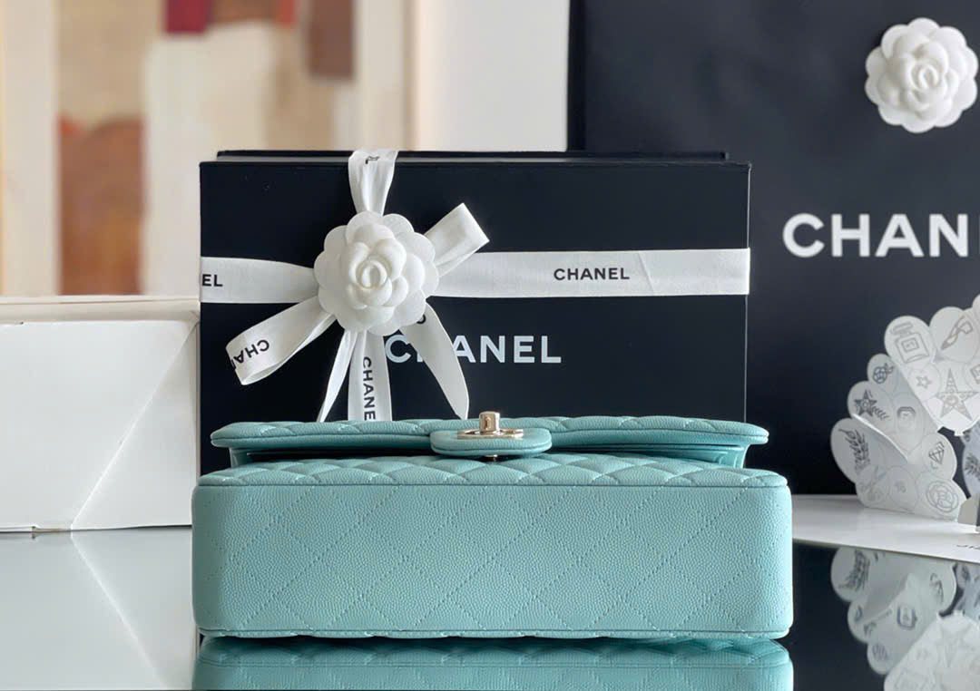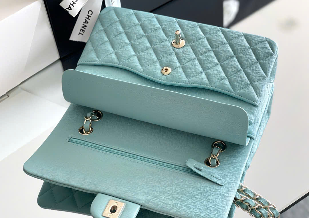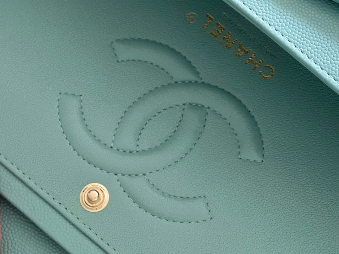 CHANEL CLASSIC – 25 – LIGHT BLUE – CAVIAR – GOLD CHAMPAGNE