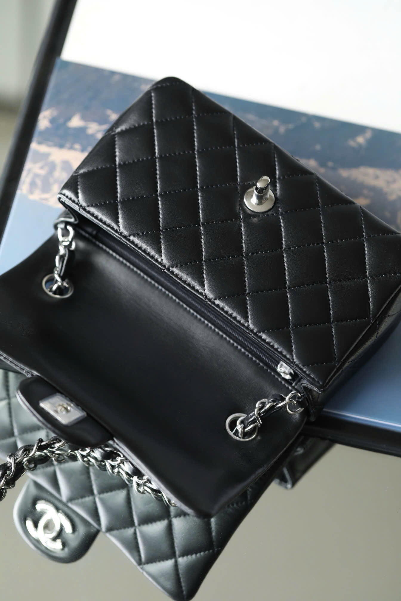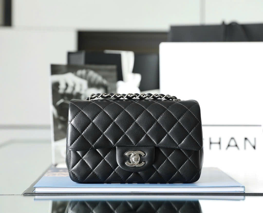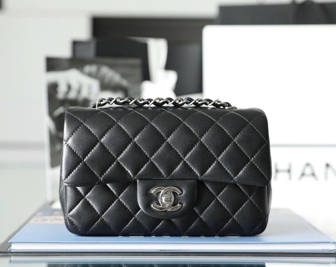 CHANEL CLASSIC MINI RECTANGLE – BLACK – LAMBSKIN – SILVER