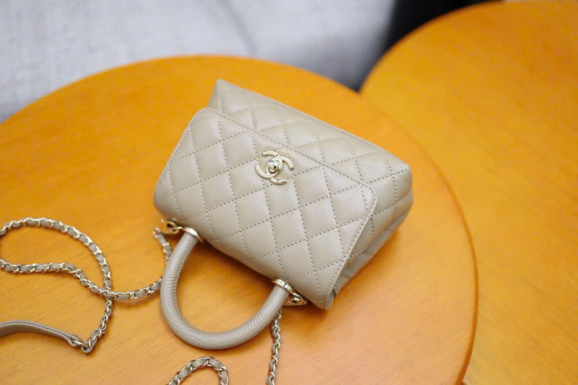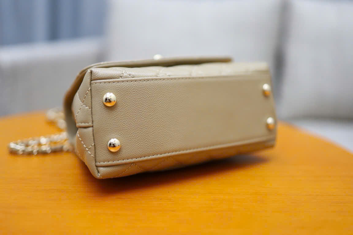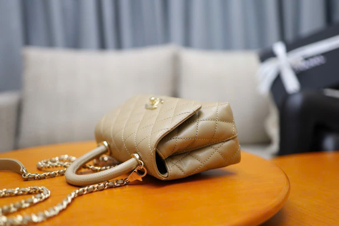 CHANEL COCO – MINI – DARK BEIGE – CAVIAR – GOLD CHAMPAGNE