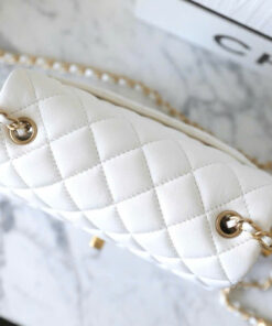 CHANEL FLAP BAG WITH CHAIN – MINI – WHITE – LAMBSKIN – GOLD