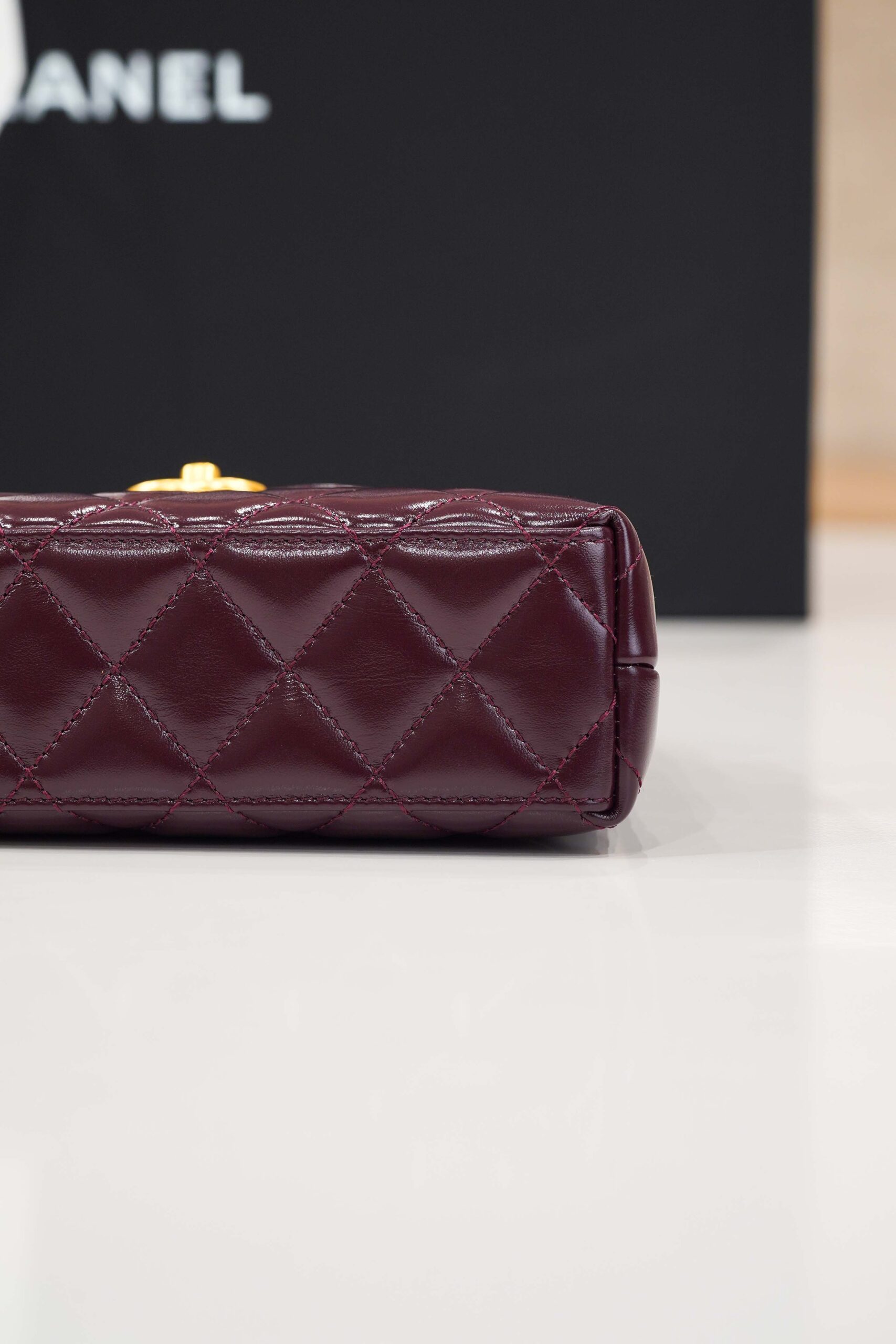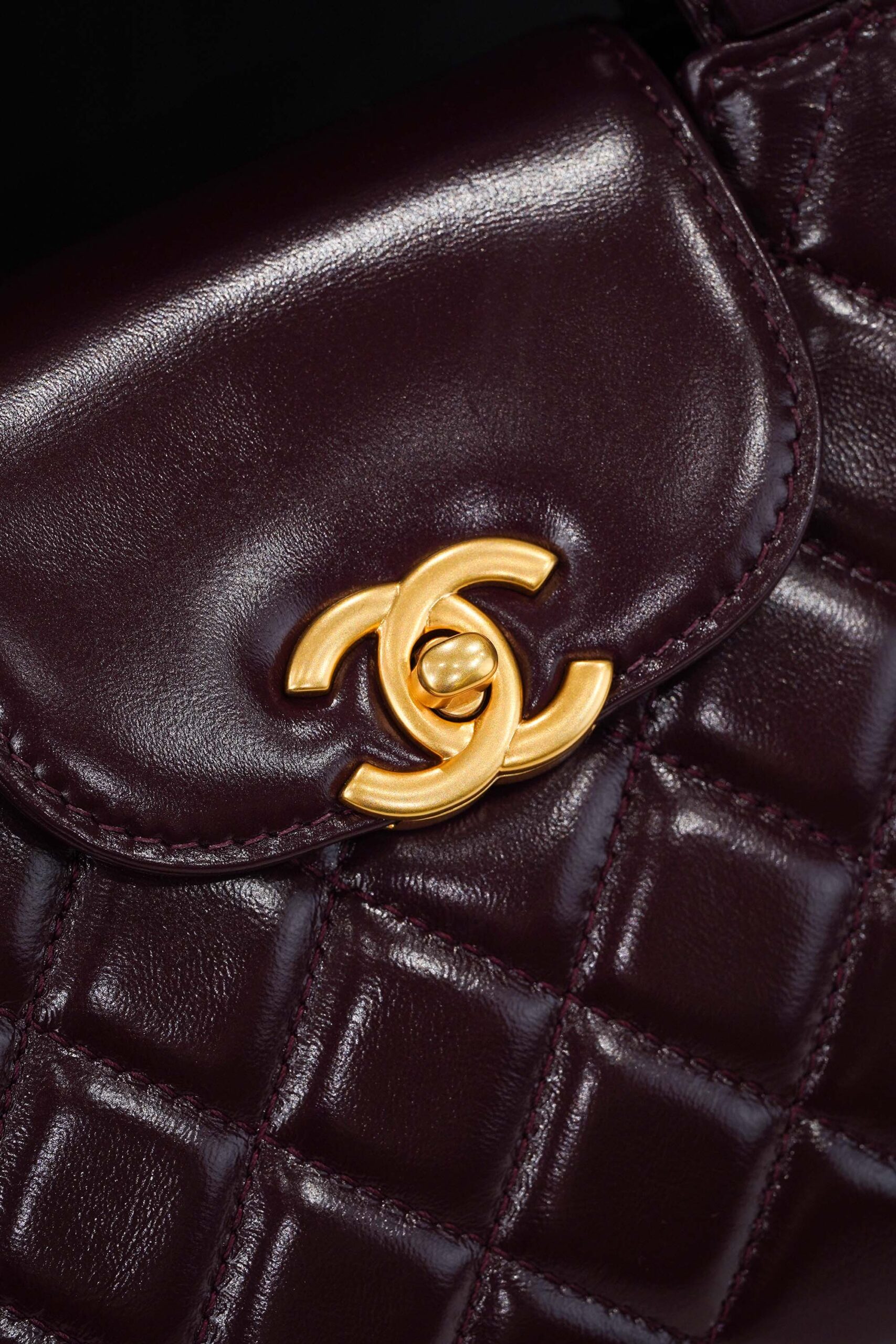 CHANEL KELLY – RED WINE – SHINY AGED CALFSKIN – GOLD