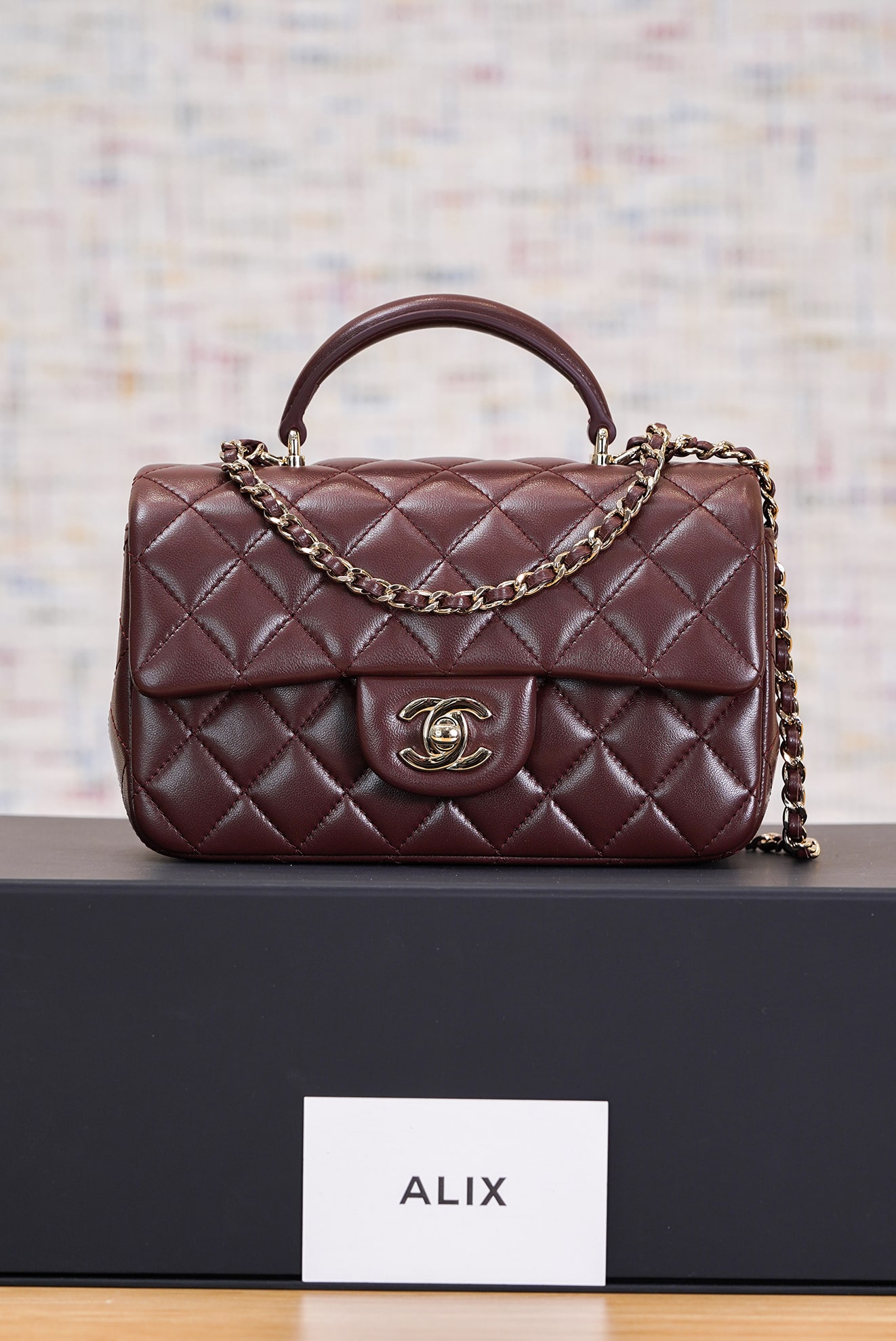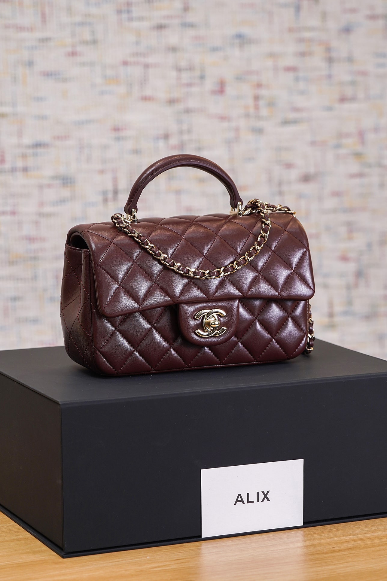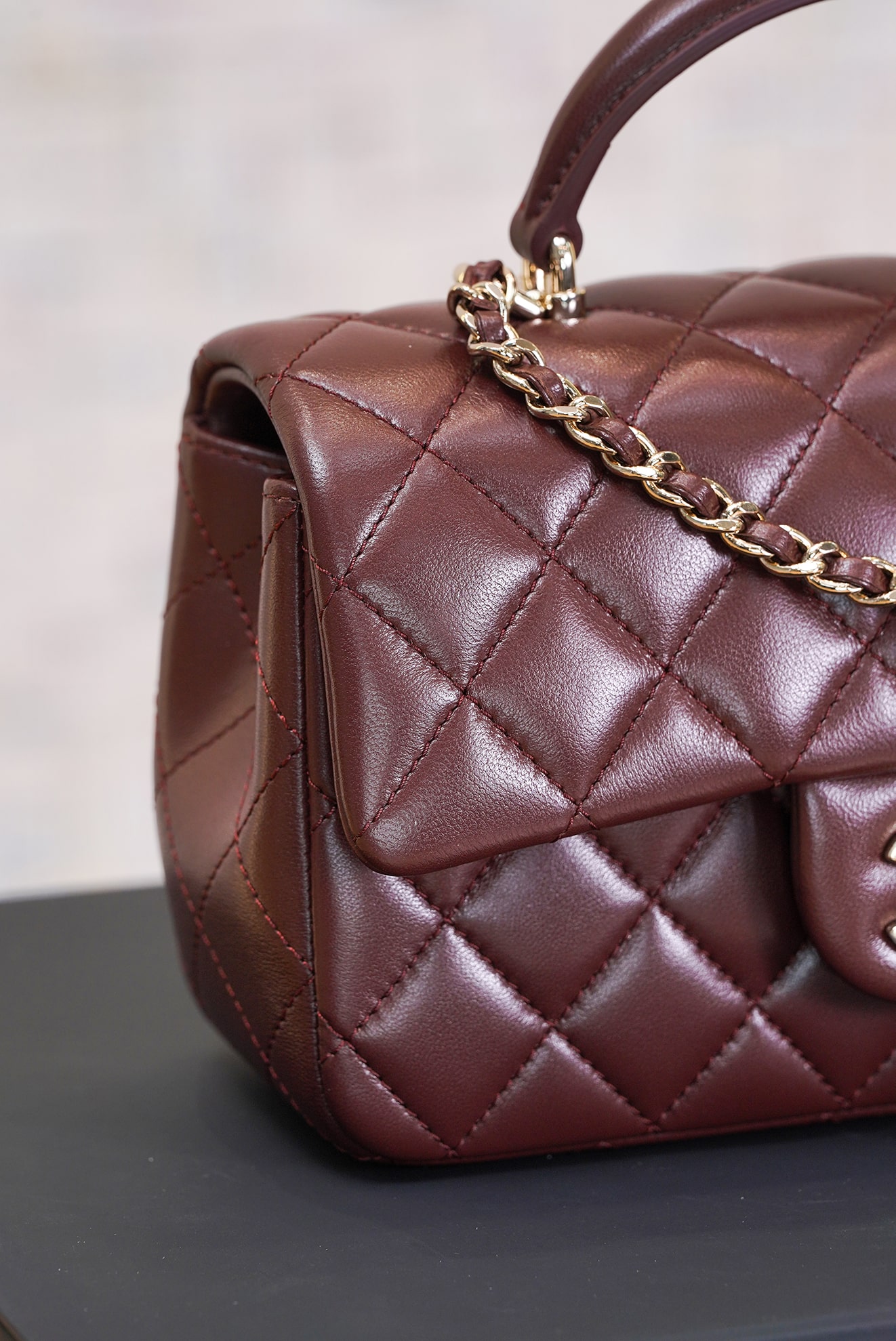 CHANEL TOP HANDLE – MINI – DARK BROWN – LAMBSKIN – GOLD CHAMPAGNE