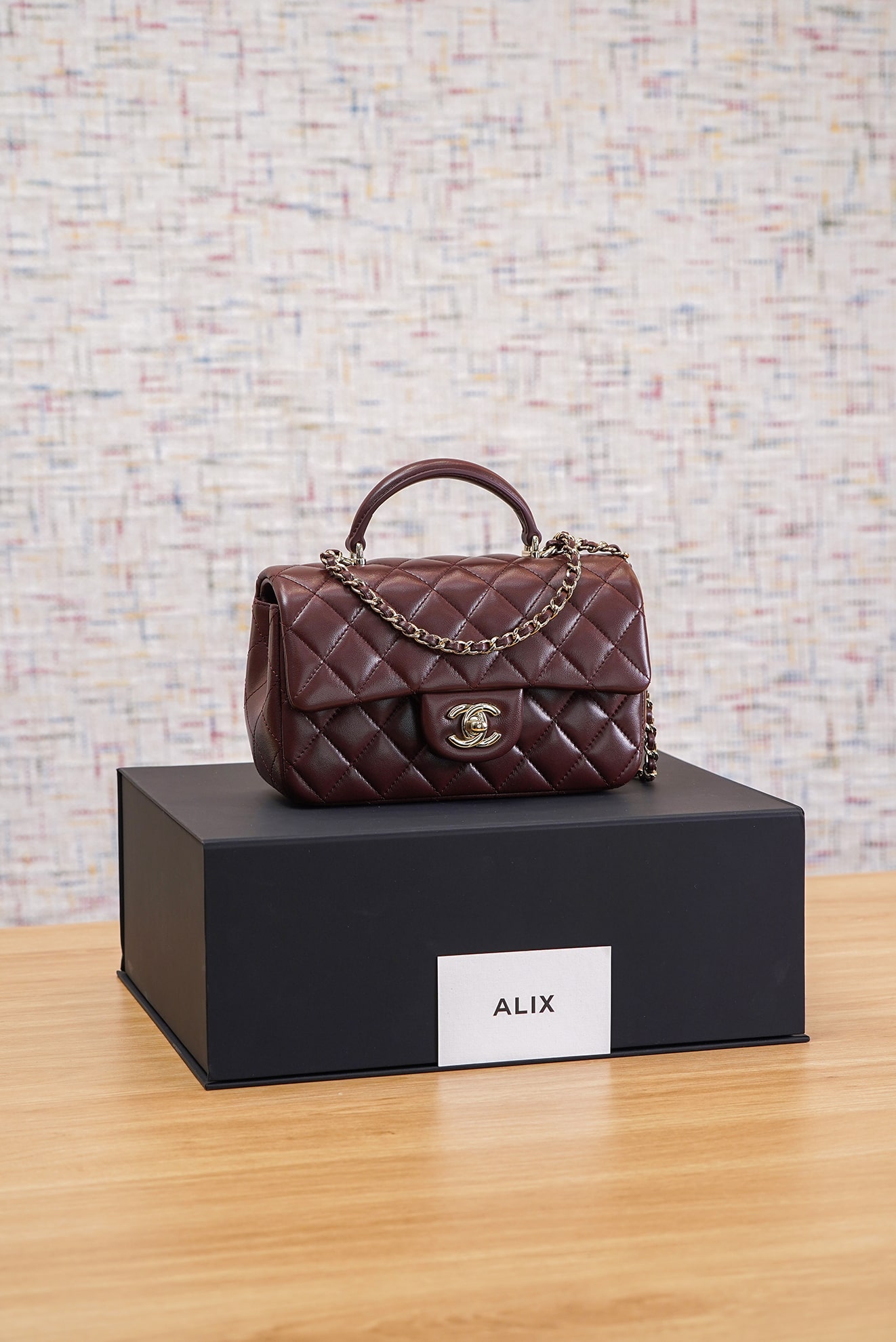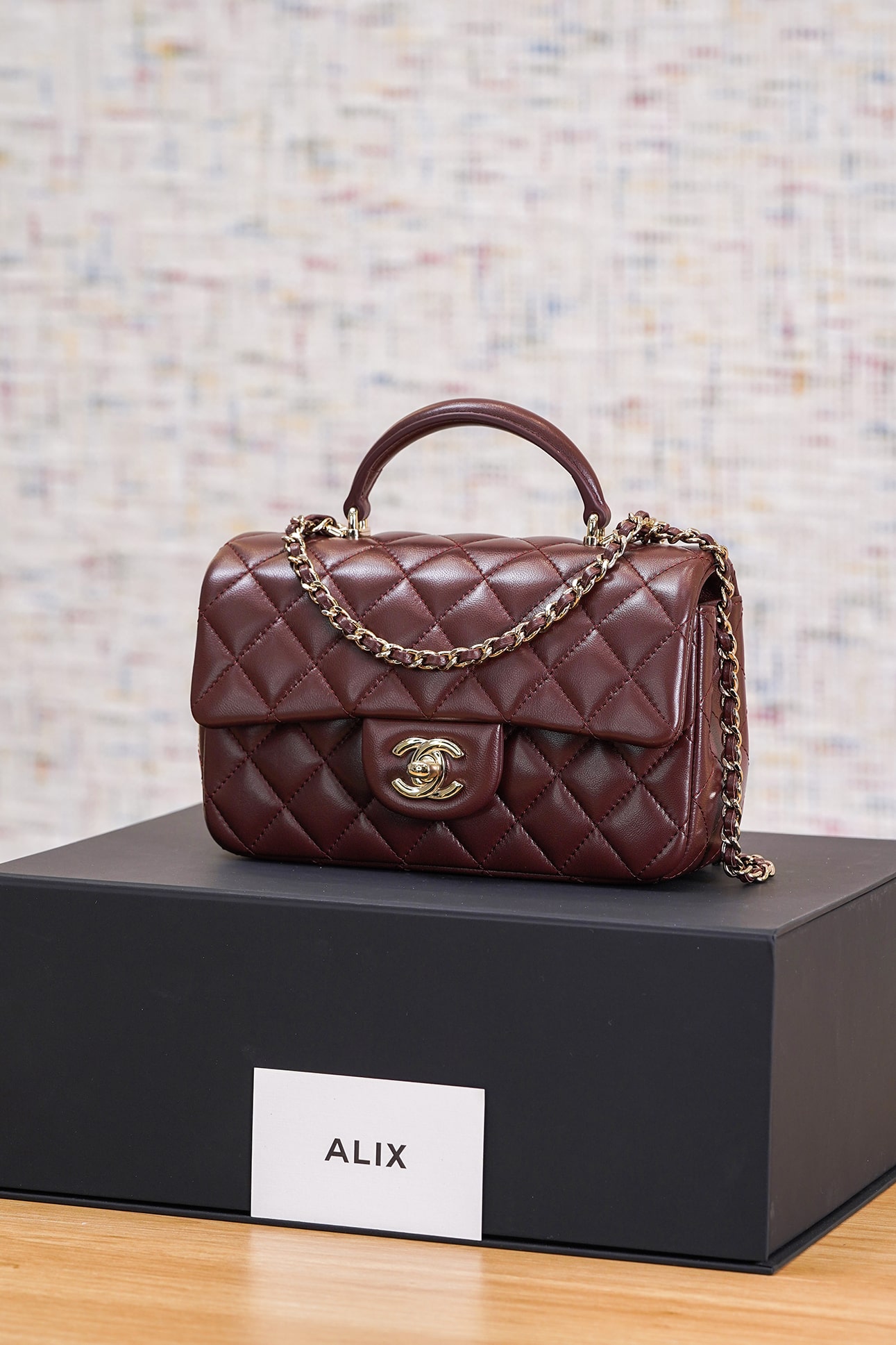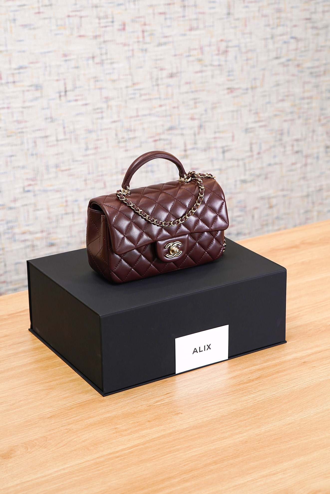 CHANEL TOP HANDLE – MINI – DARK BROWN – LAMBSKIN – GOLD CHAMPAGNE
