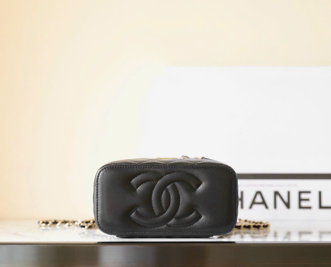 CHANEL VANITY HANDLE – SMALL – BLACK – LAMBSKIN – GOLD CHAMPAGNE