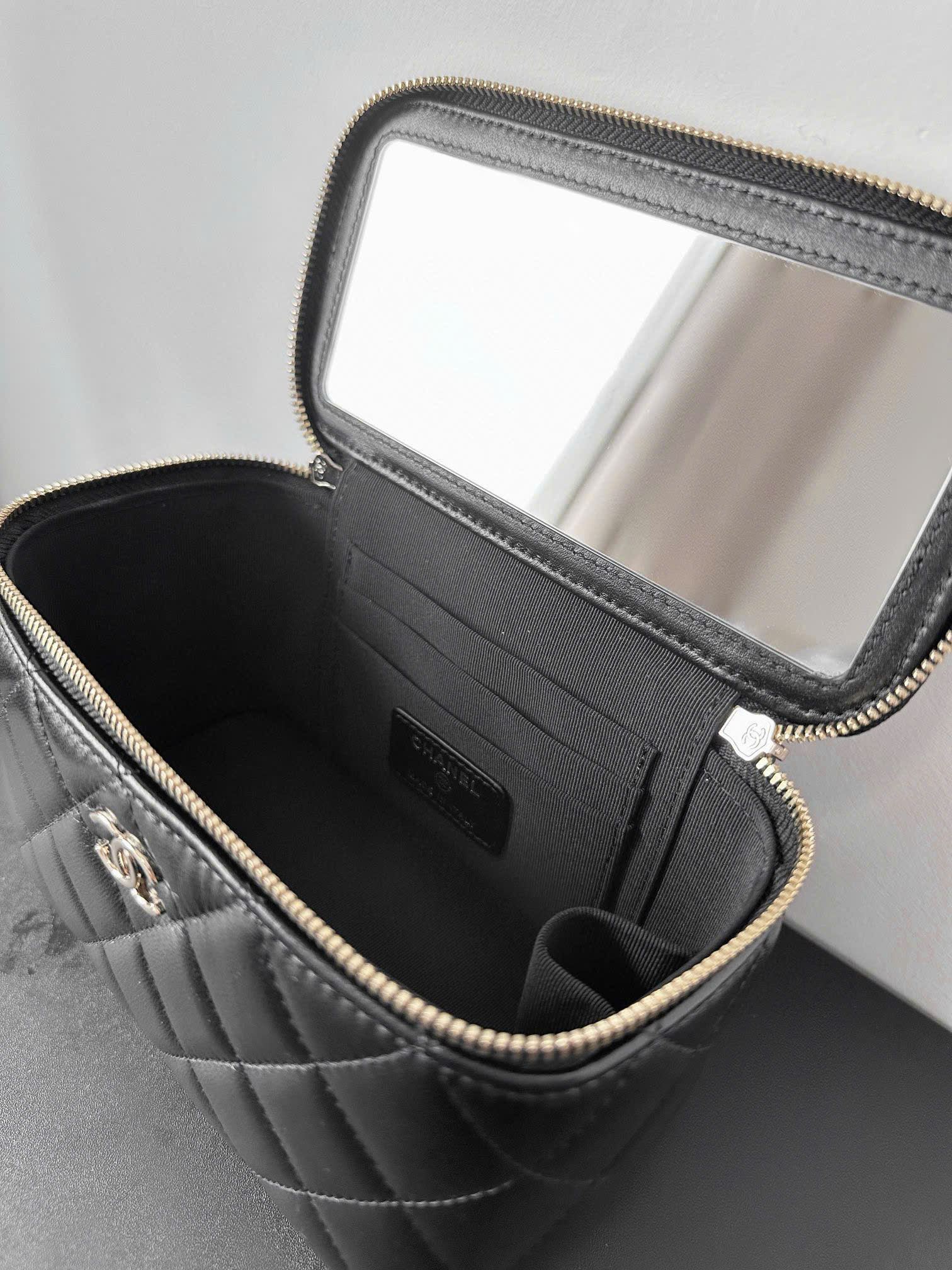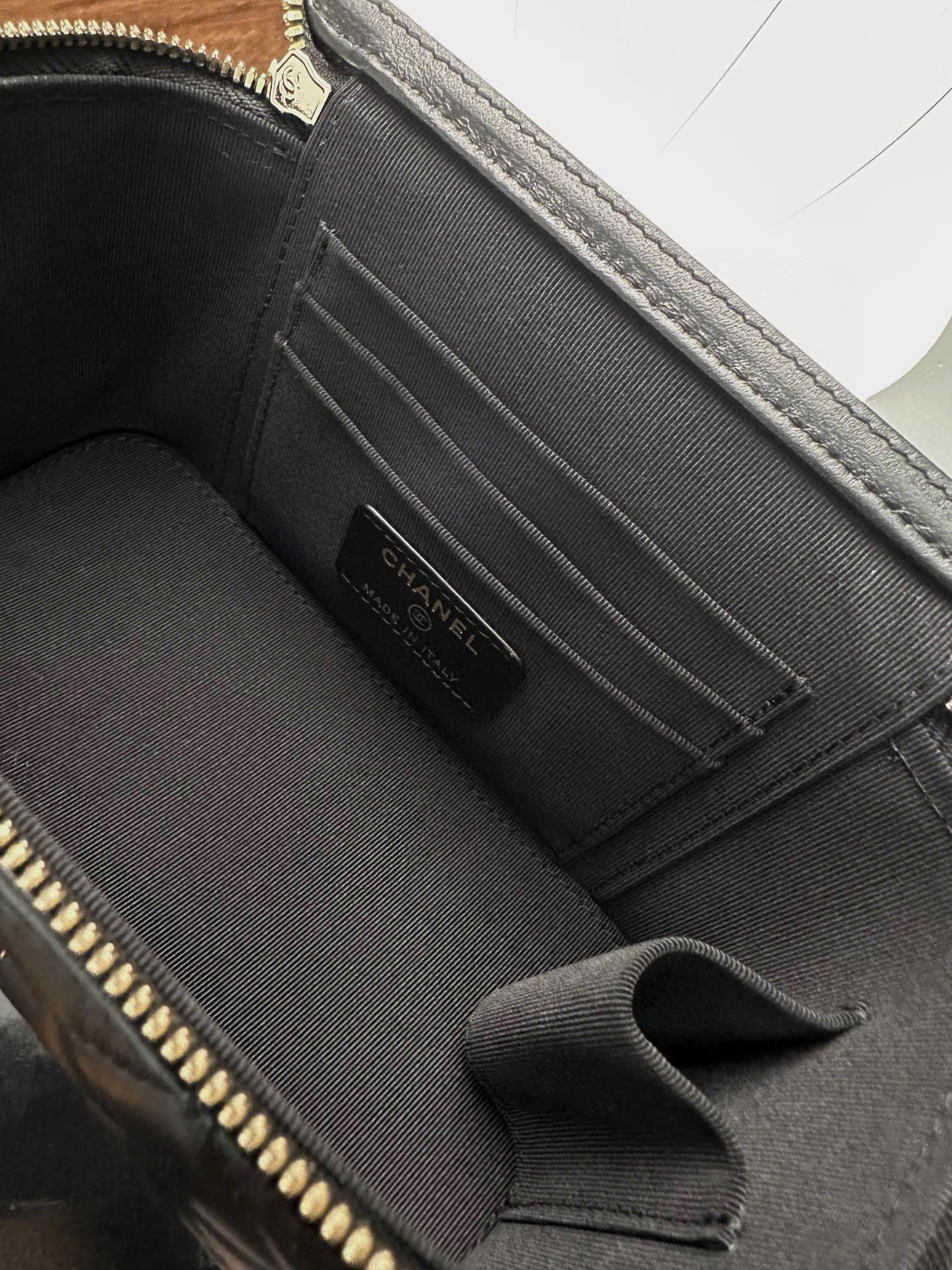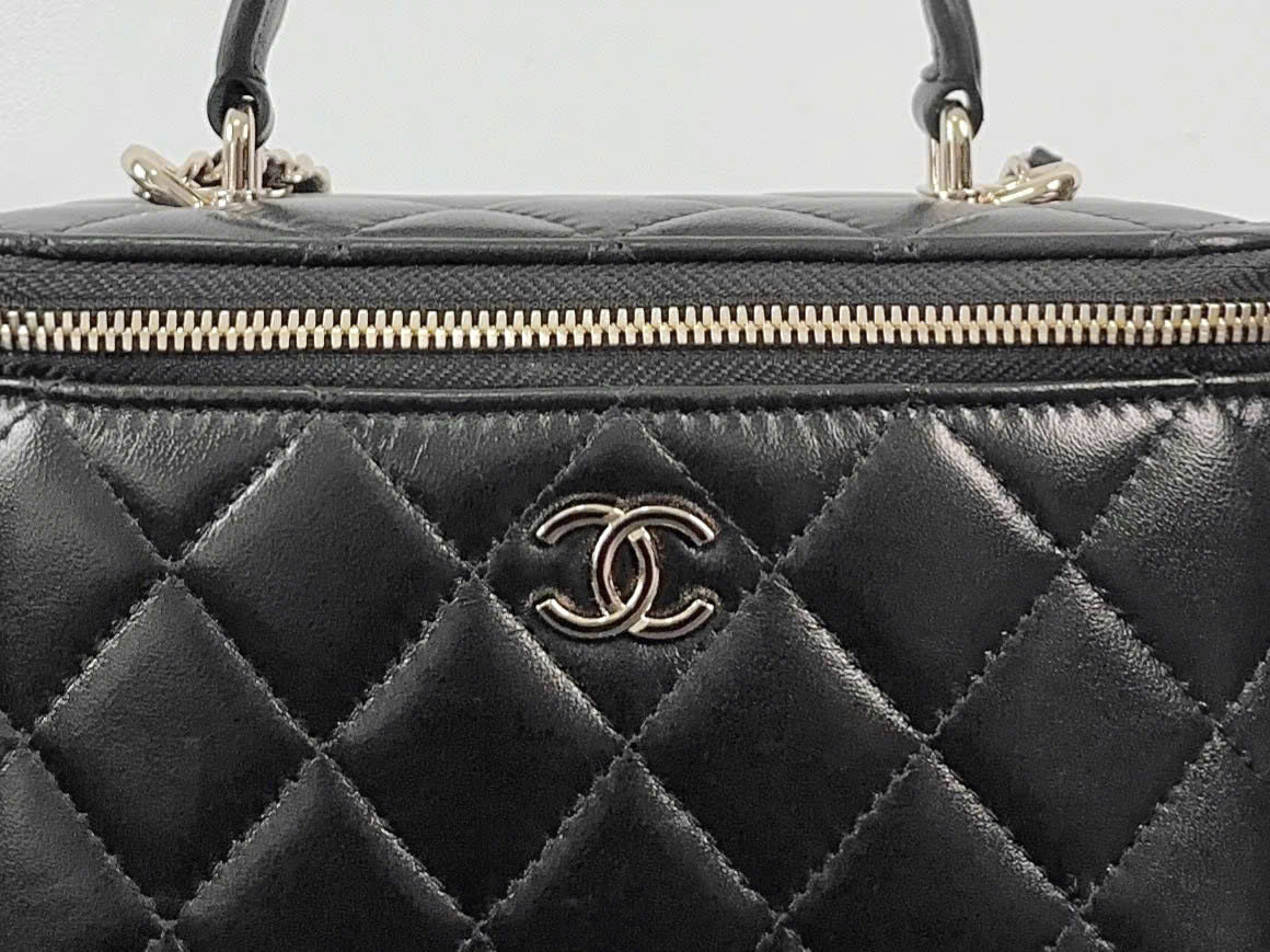 The Chanel Vanity Top Handle bag is crafted from high-quality leather, soft and durable over time. Every detail is meticulously finished, from the seams to the finishing layer, ensuring perfection in each product.