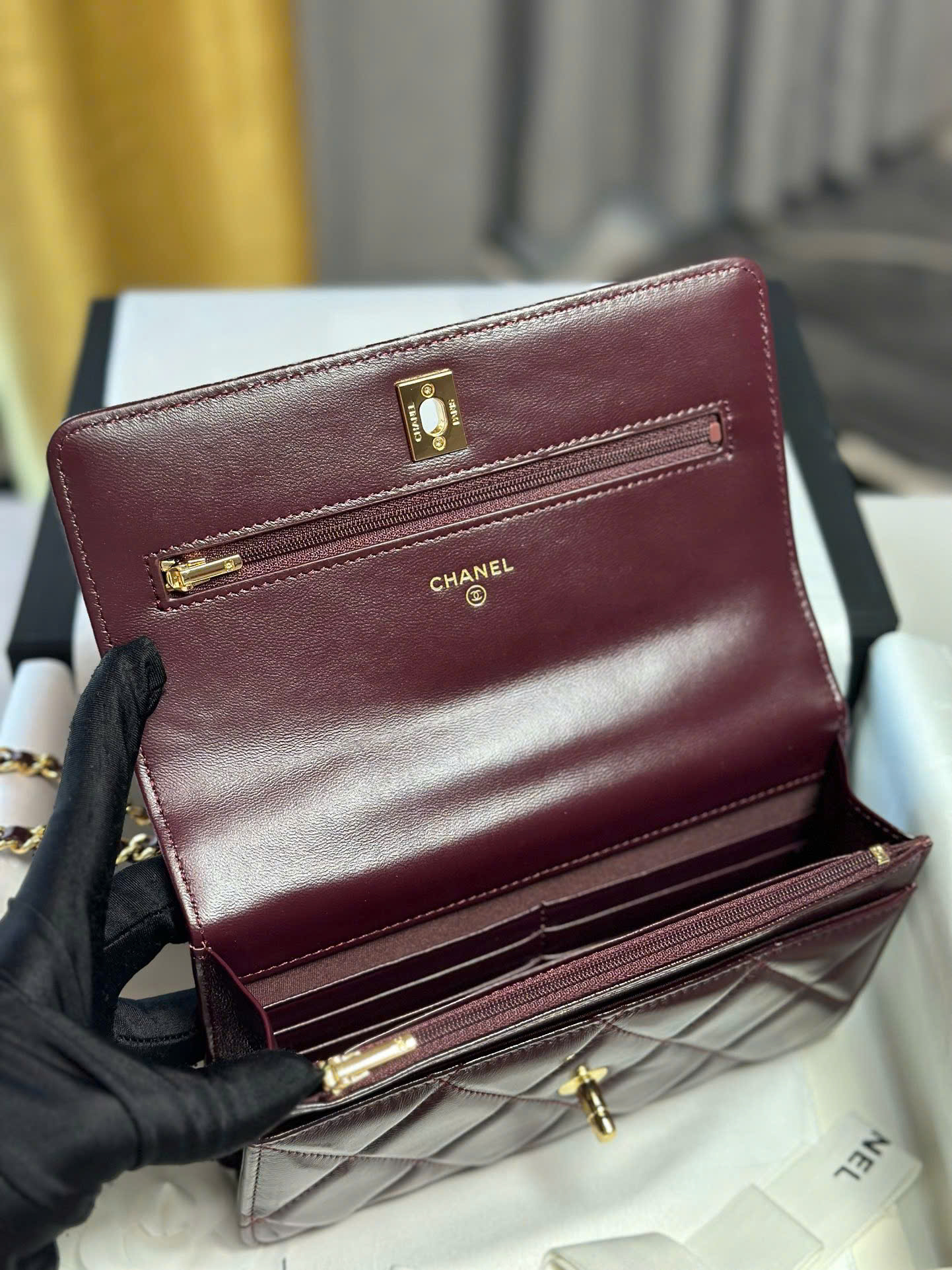 High-quality leather material: Made from Chanel’s signature caviar leather, with a solid, durable texture and excellent scratch resistance, the 24B WOC Handle bag always retains its look beautiful over time.