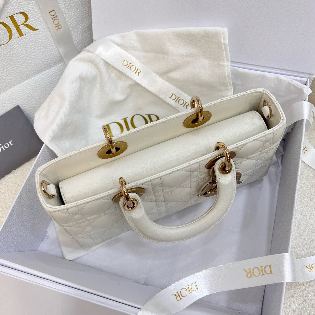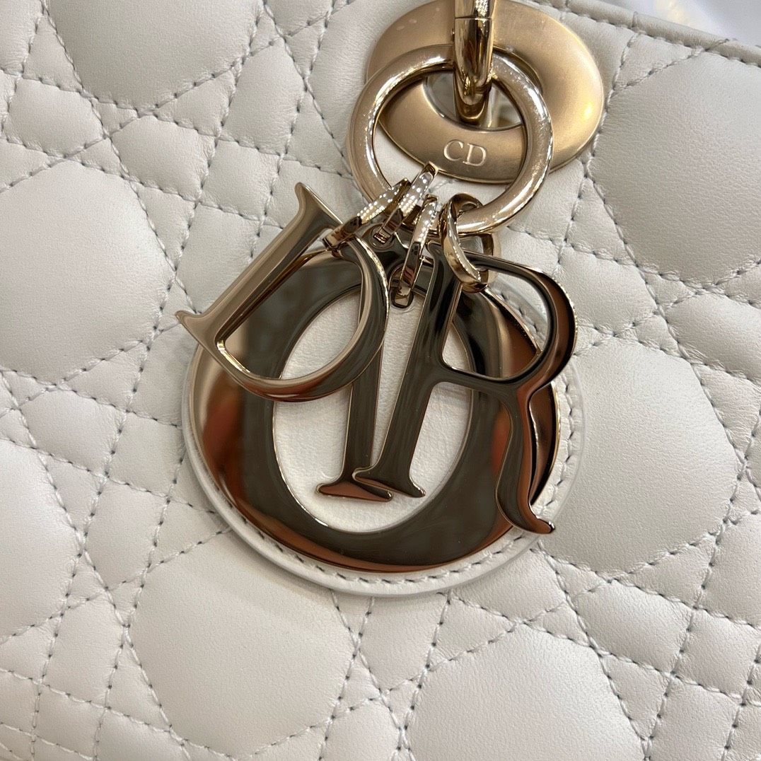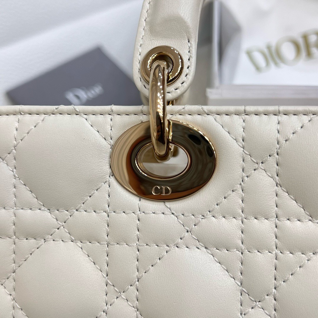DIOR LADY D-JOY – MEDIUM – WHITE – LAMBSKIN – GOLD
