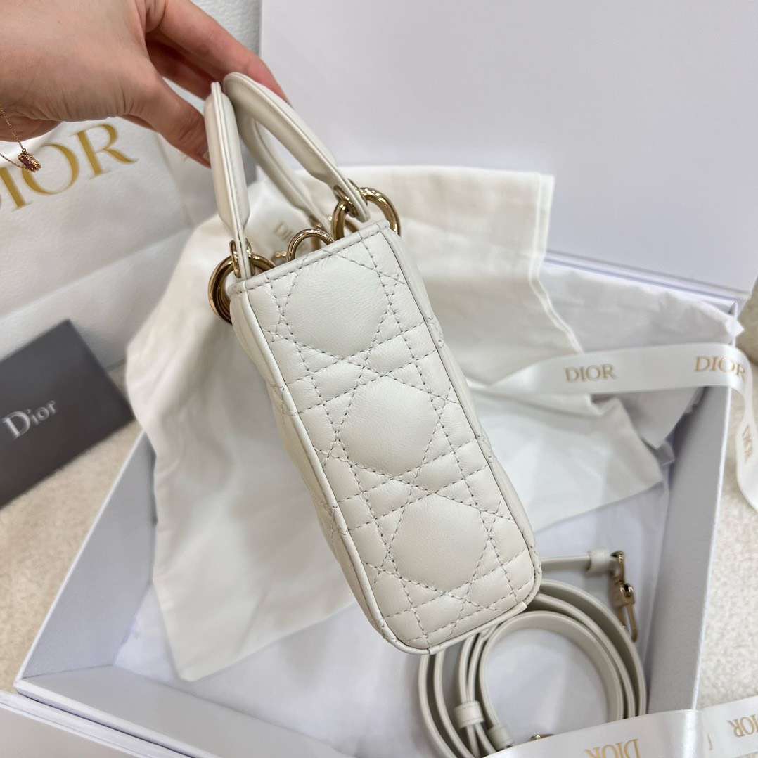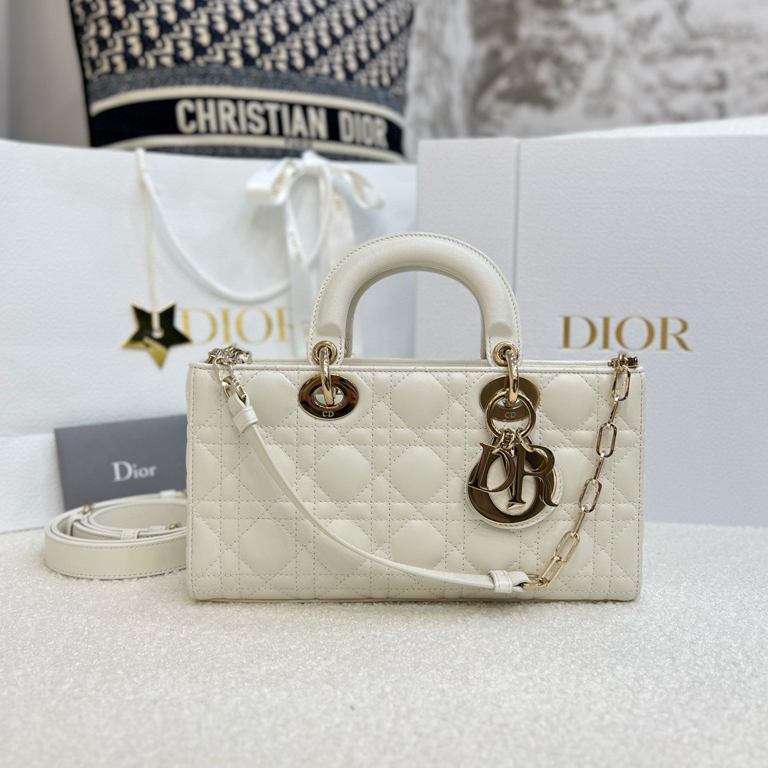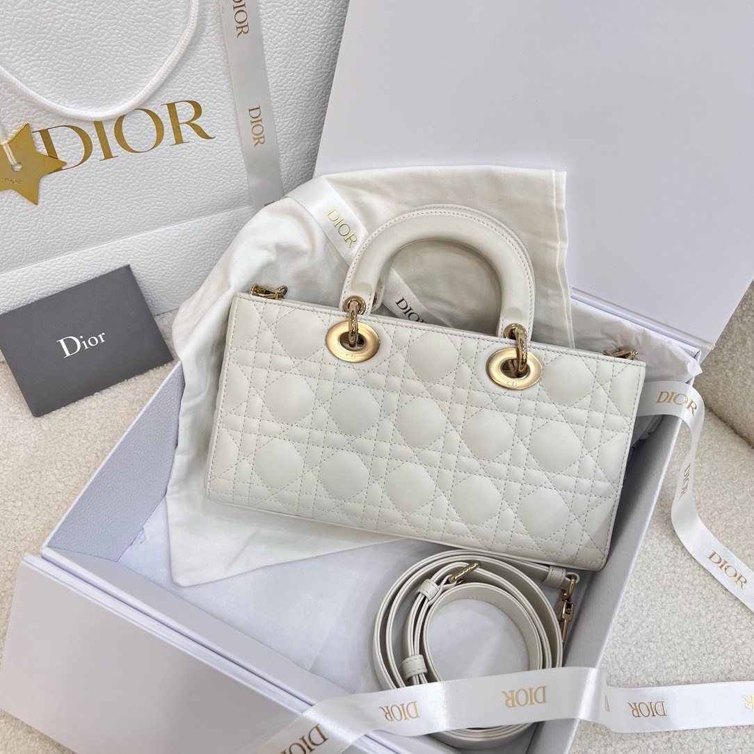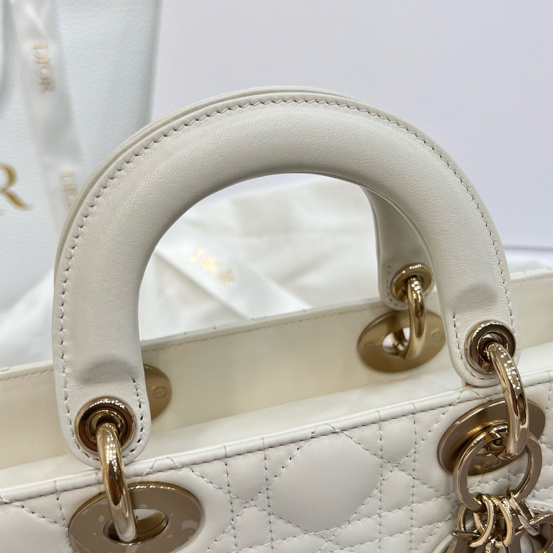 DIOR LADY D-JOY – MEDIUM – WHITE – LAMBSKIN – GOLD