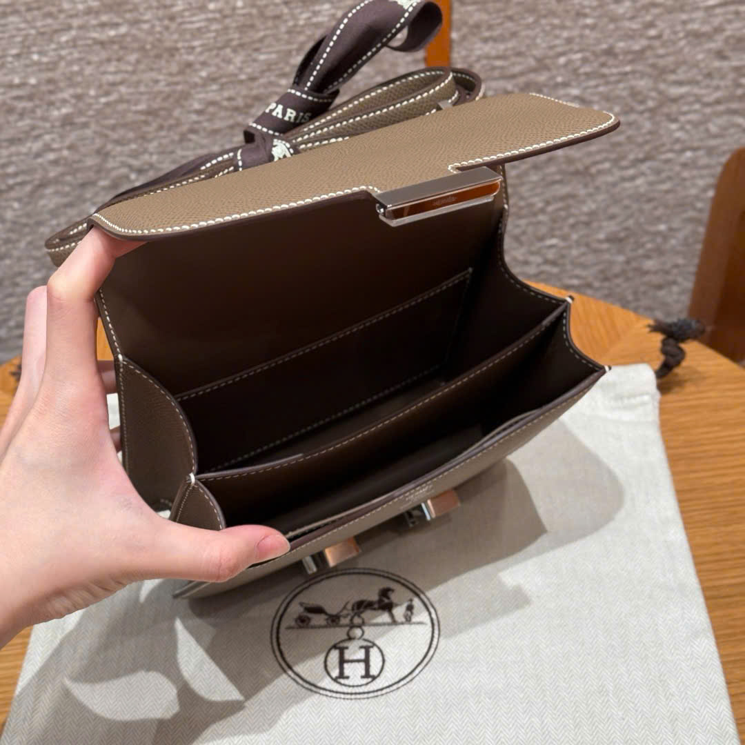 - High-quality materials: Crafted from premium leathers such as Togo, Clemence or Epsom, the Hermes Constance bag brings a soft, durable feel and has an excellent finish. Each bag is handcrafted with meticulousness and care, reflecting absolute perfection.