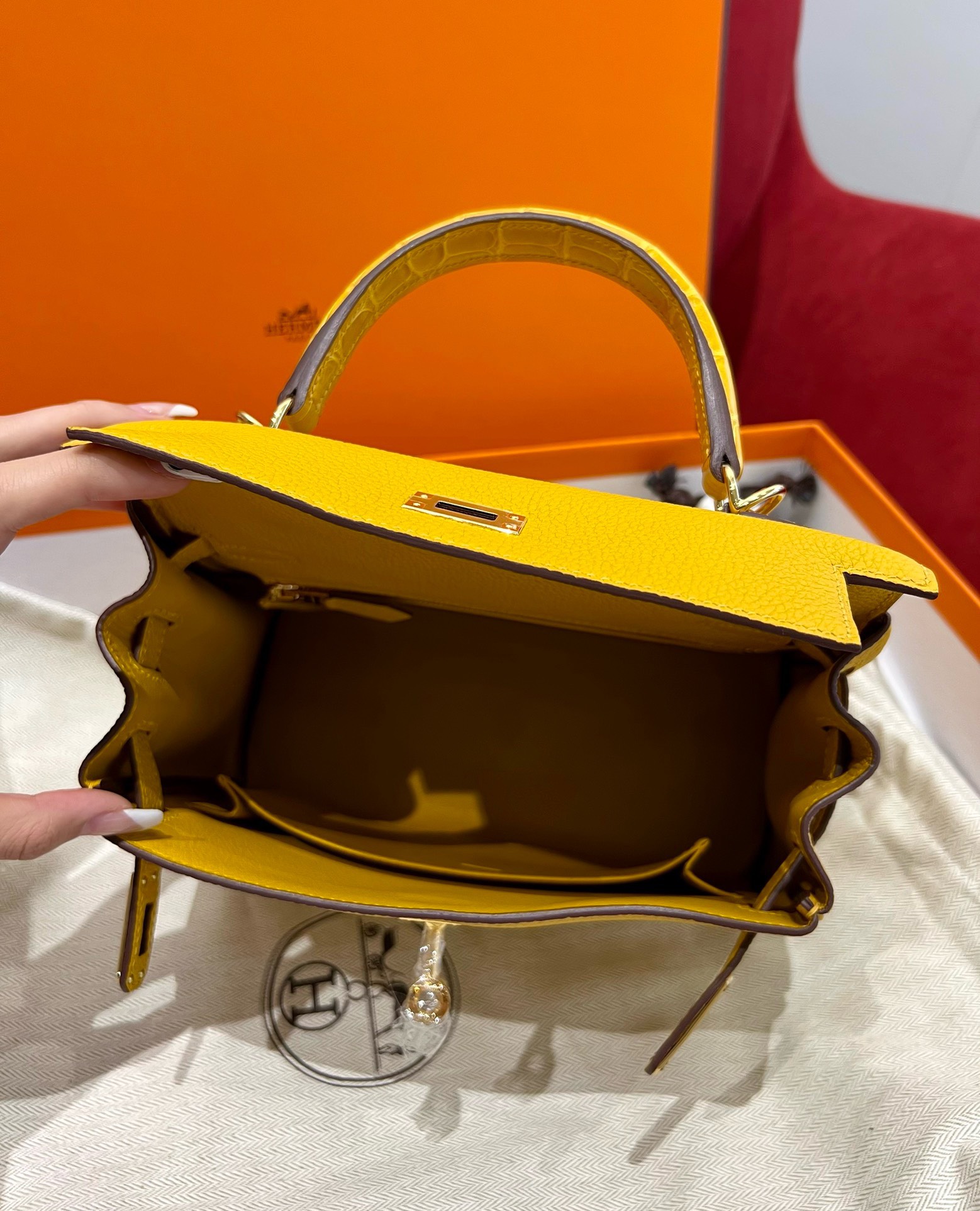 Classy design: With the signature “Kelly” lock, sturdy handle and flexible strap, the Hermes Kelly 25 bag not only brings elegance but is also extremely convenient. You can easily switch from a handbag to a crossbody bag, creating comfort and sophistication in all situations.