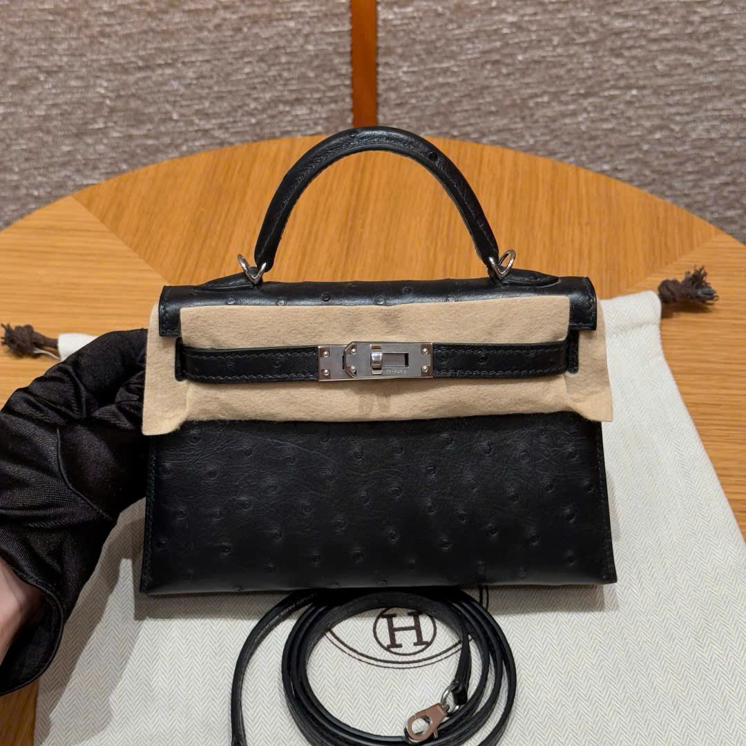 HERMES KELLY – MINI – NOIR – OSTRICH – PHW